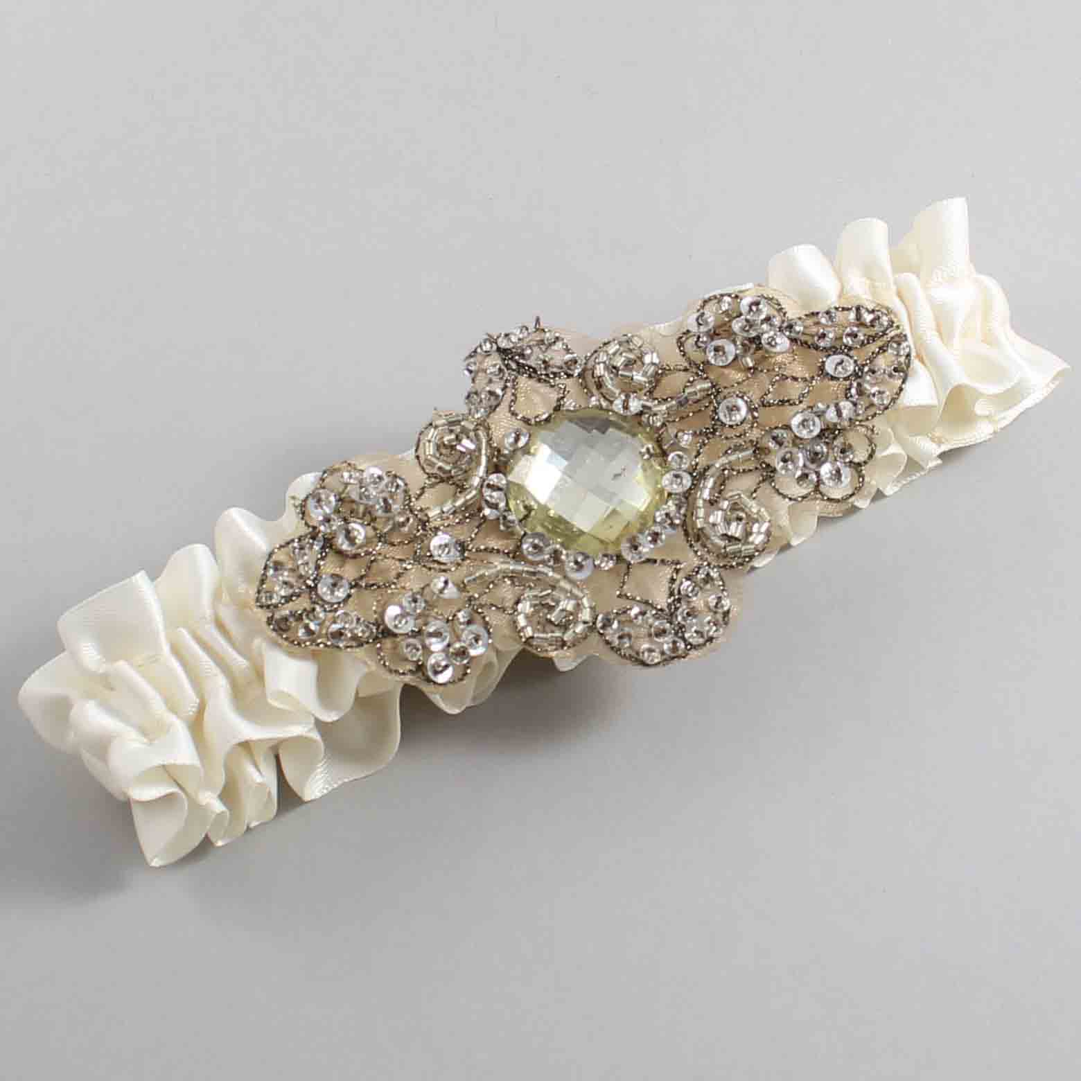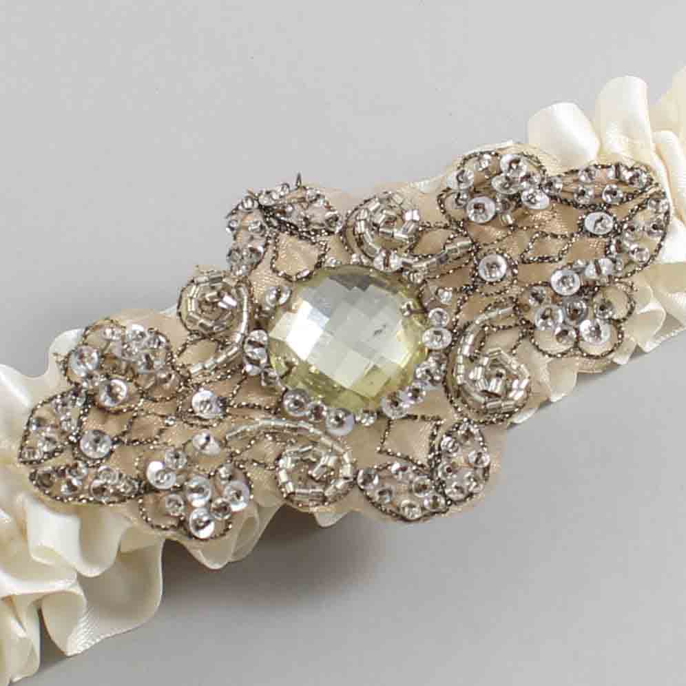 Old Lace Satin with Brown Wedding Garter / Ivory Wedding Garters / Bijou # 01-A01-(028-028)-Antique
