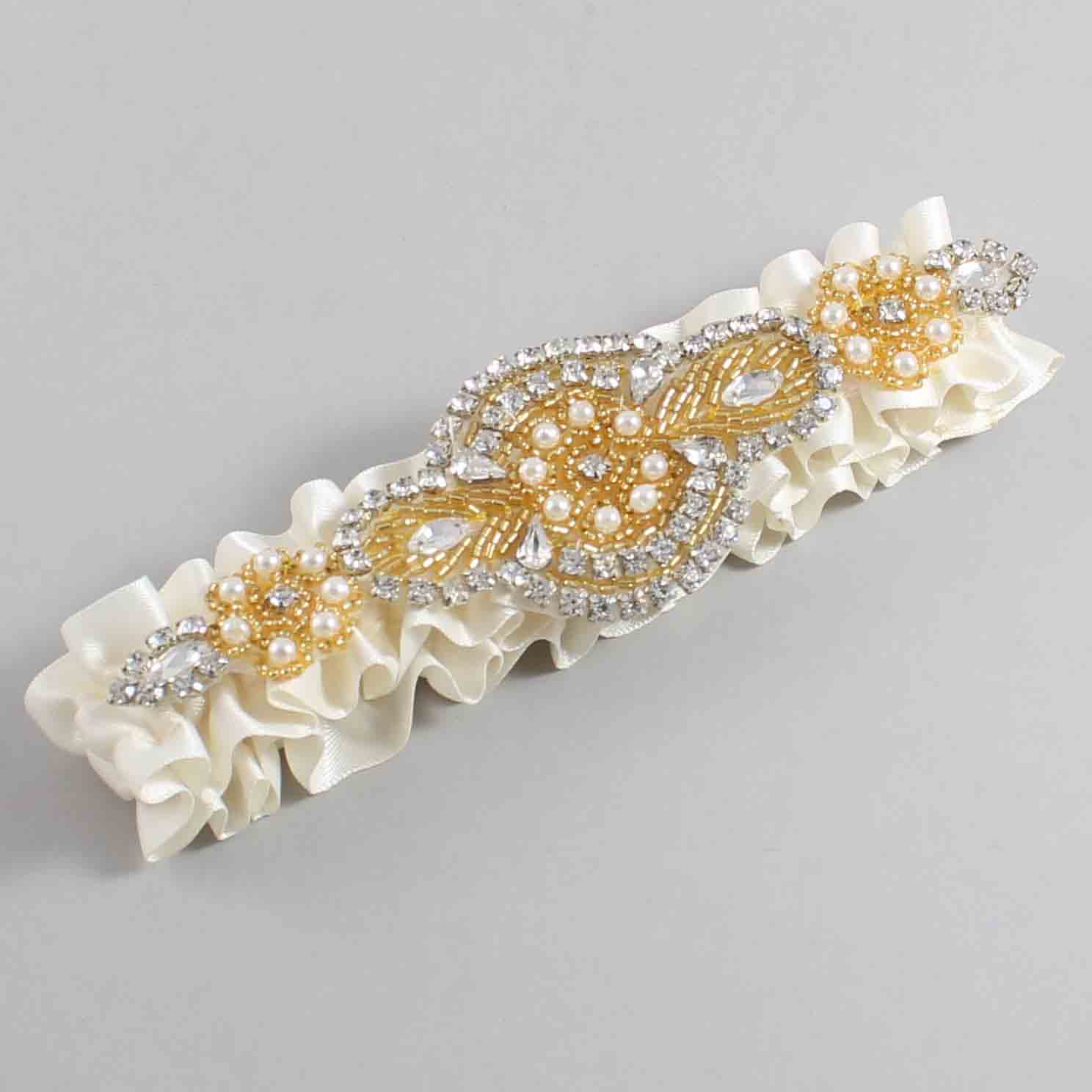 Old Lace Satin with Gold Wedding Garter / Ivory Wedding Garters / Charlotte #01-A05-(028-028)-Gold