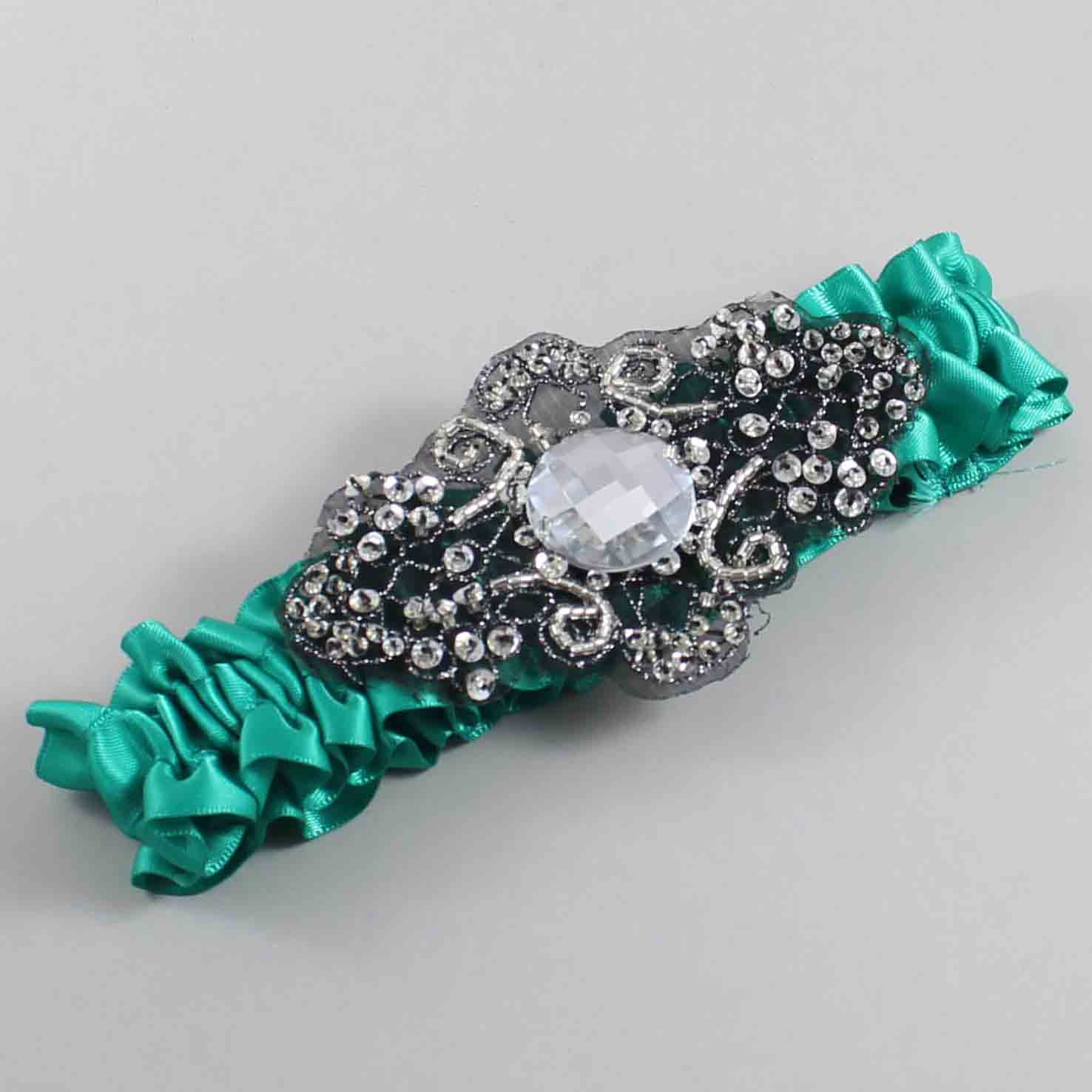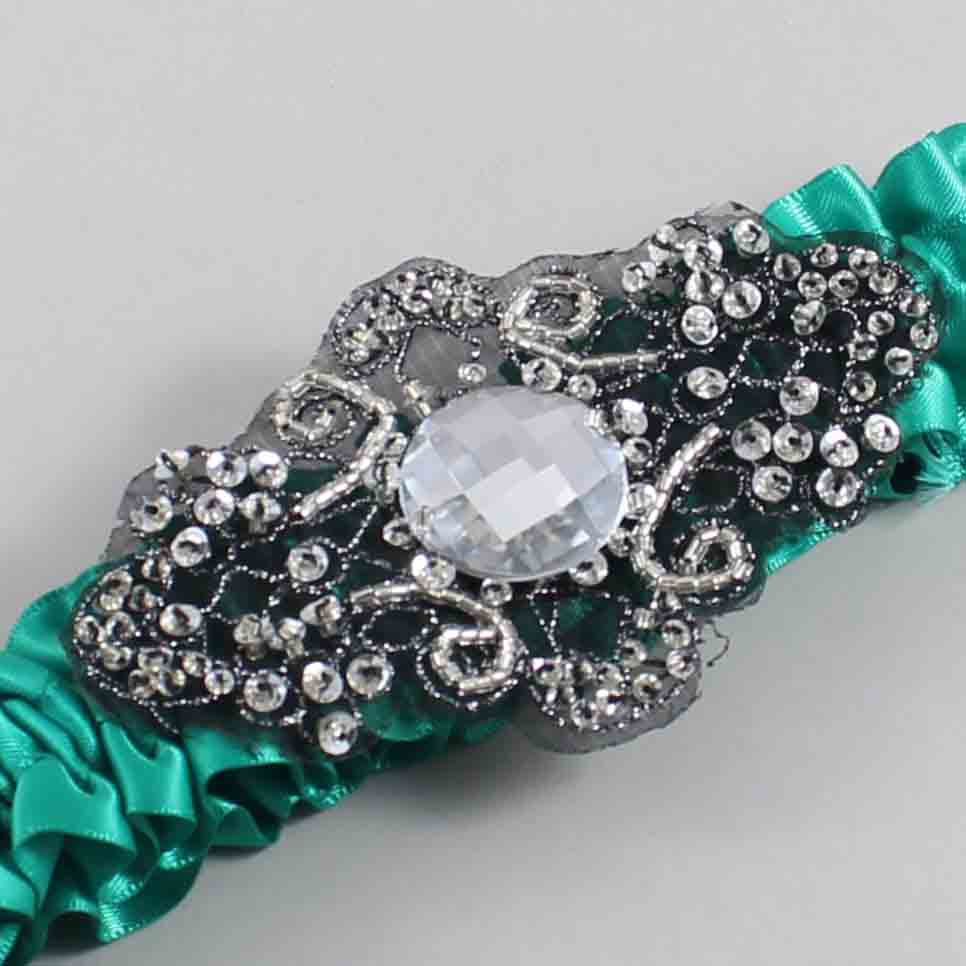 Parrot Green Satin with Black Wedding Garter / Teal Wedding Garters / Bijou #01-A02-(583-583)-Black