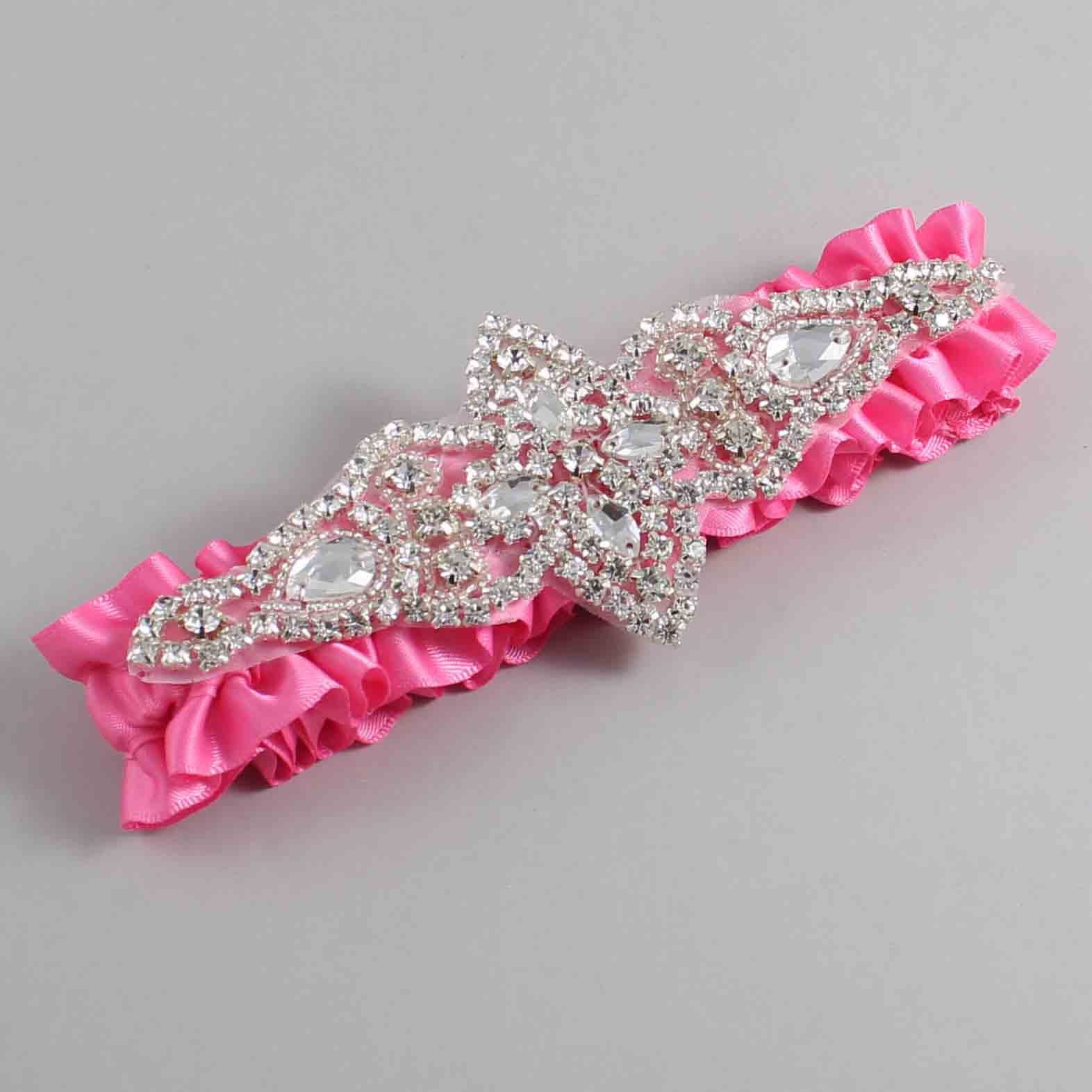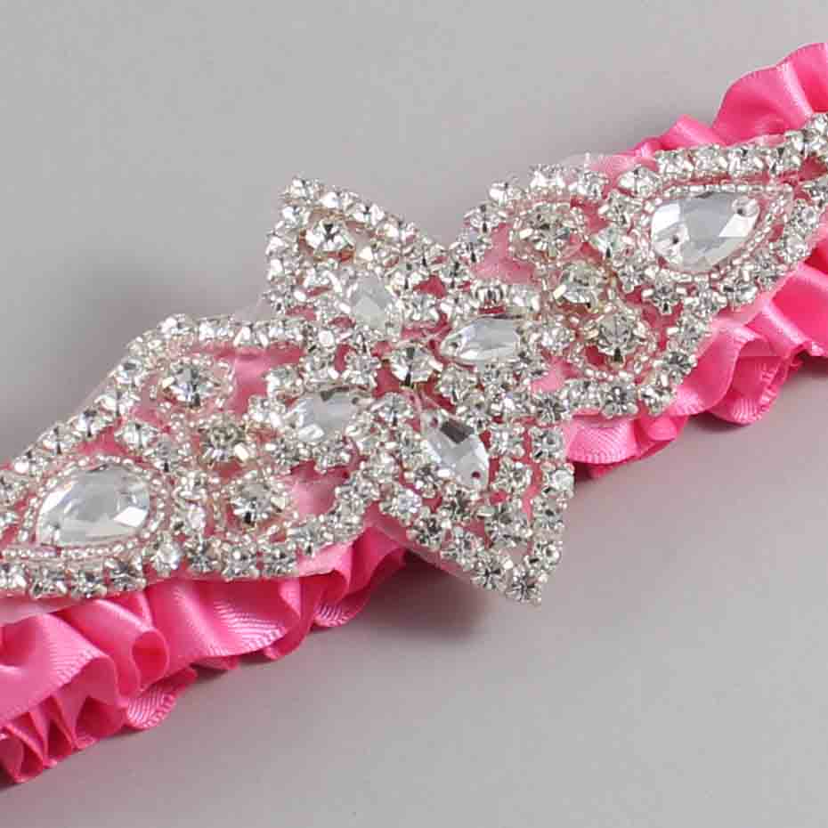 Persian Pink Satin Wedding Garter / Solid Pink Wedding Garters / Lorine #01-A09-(142-142)-Silver