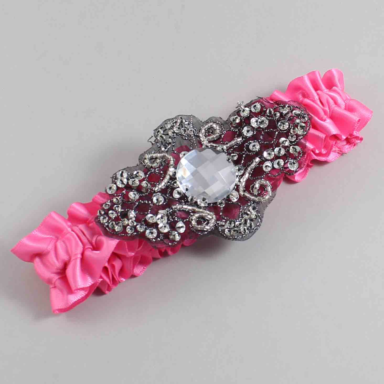 Persian Pink Satin with Black Wedding Garter / Pink Wedding Garters / Bijou #01-A02-(142-142)-Black