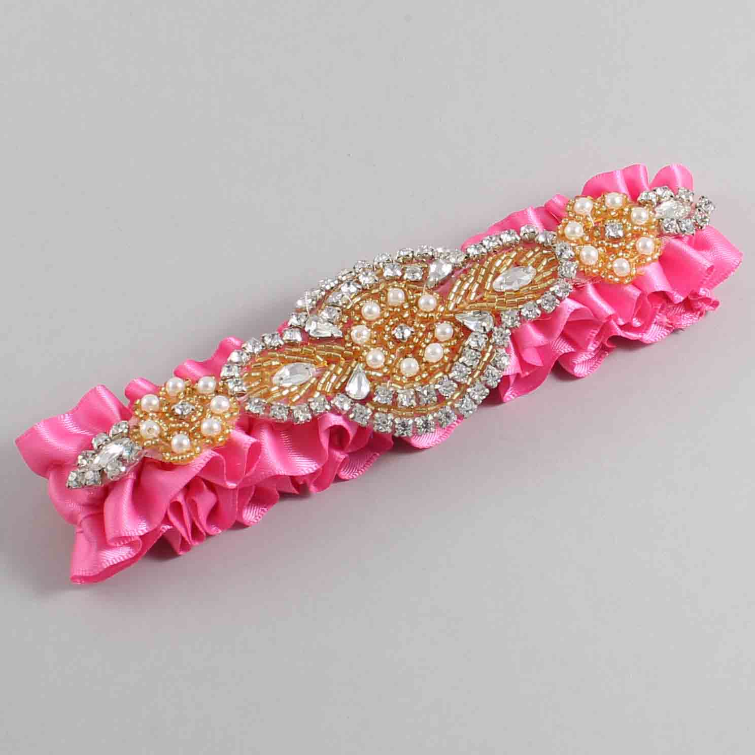 Home » Shop » Shop by Color » Shop by Satin Color » Persian Pink Wedding Garters 142 » Persian Pink Satin with Gold Wedding Garter / Pink Wedding Garters / Charlotte # (142-142)-01-A05-Gold