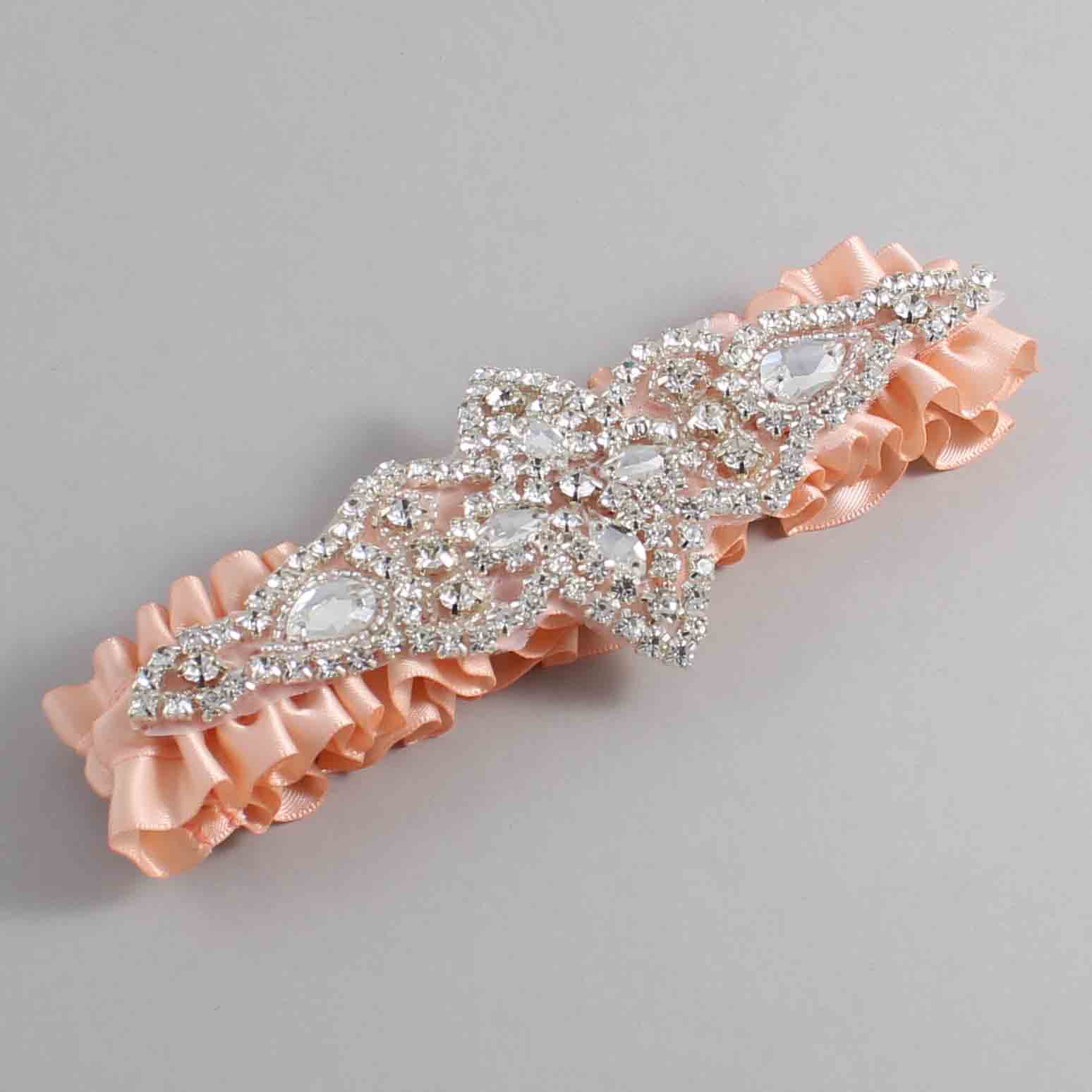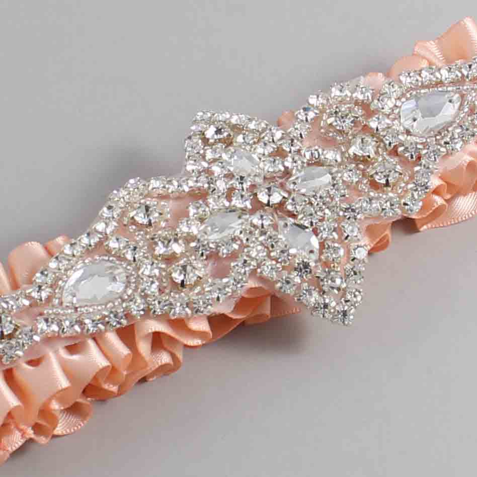 Petal Peach Satin Wedding Garter / Solid Orange Wedding Garters / Lorine #01-A09-(714-714)-Silver