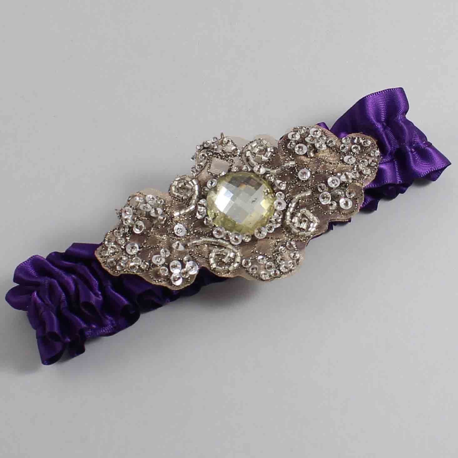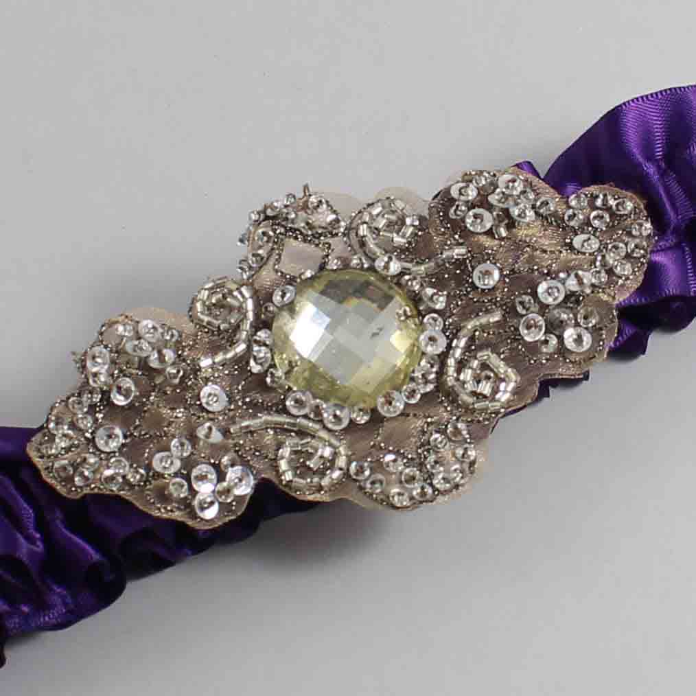 Plum Satin with Brown Wedding Garter / Purple Wedding Garters / Bijou # 01-A01-(285-285)-Antique