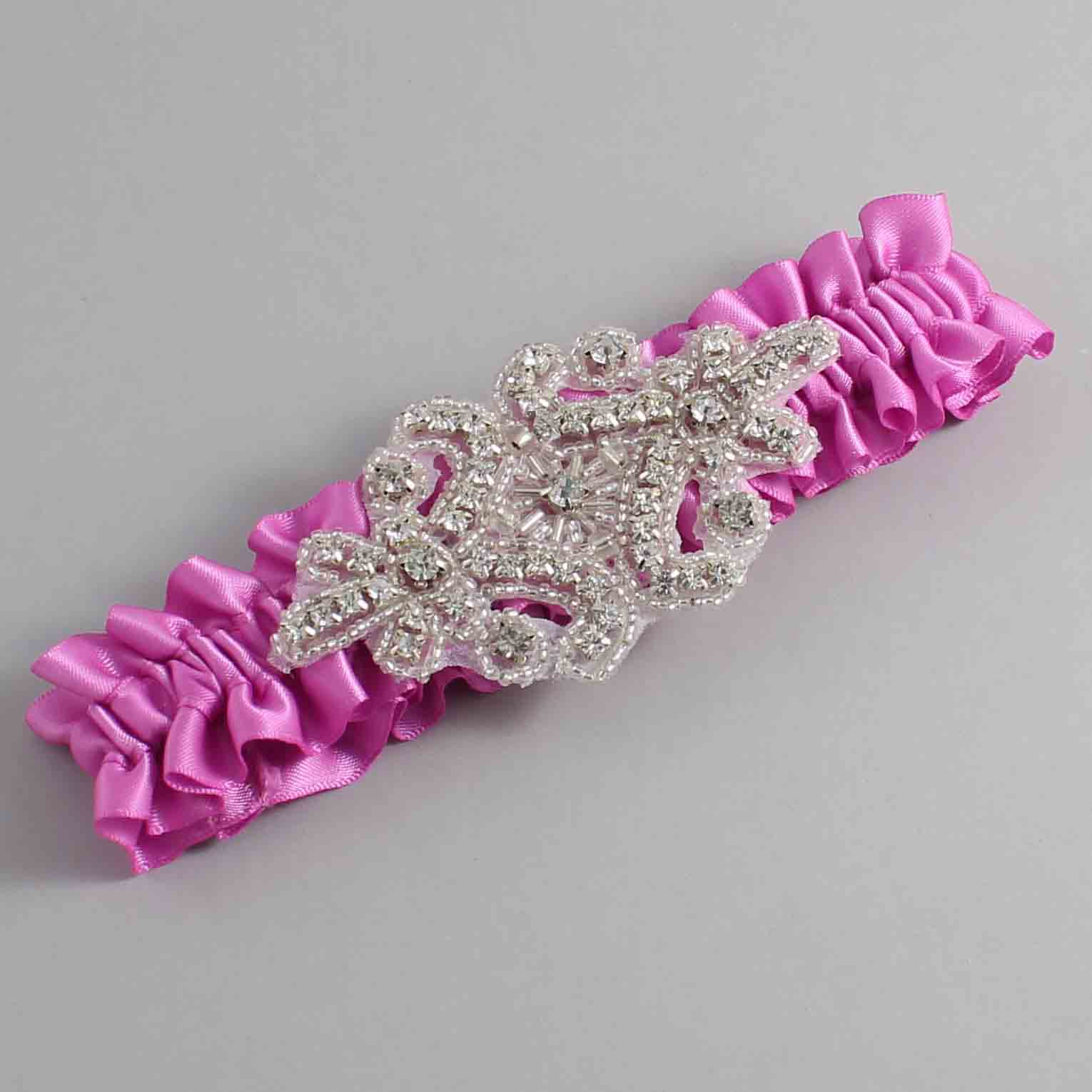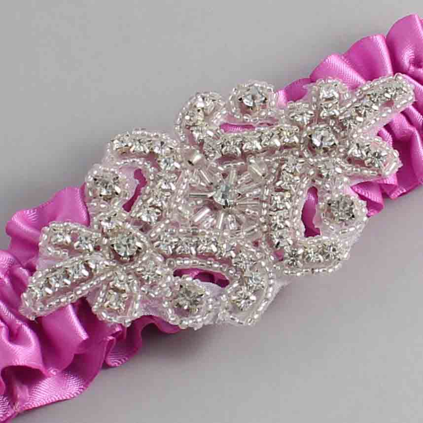 Rose Bloom Satin Wedding Garter / Solid Pink Wedding Garters / Heather #01-A07-(182-182)-Silver