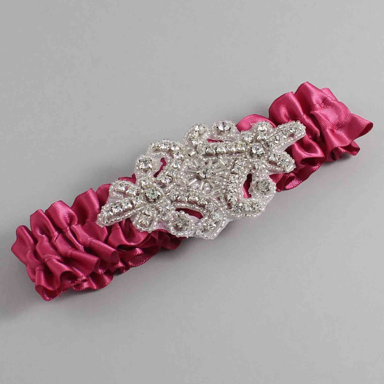 Rosewood Satin Wedding Garter / Solid Pink Wedding Garters / Heather #01-A07-(169-169)-Silver