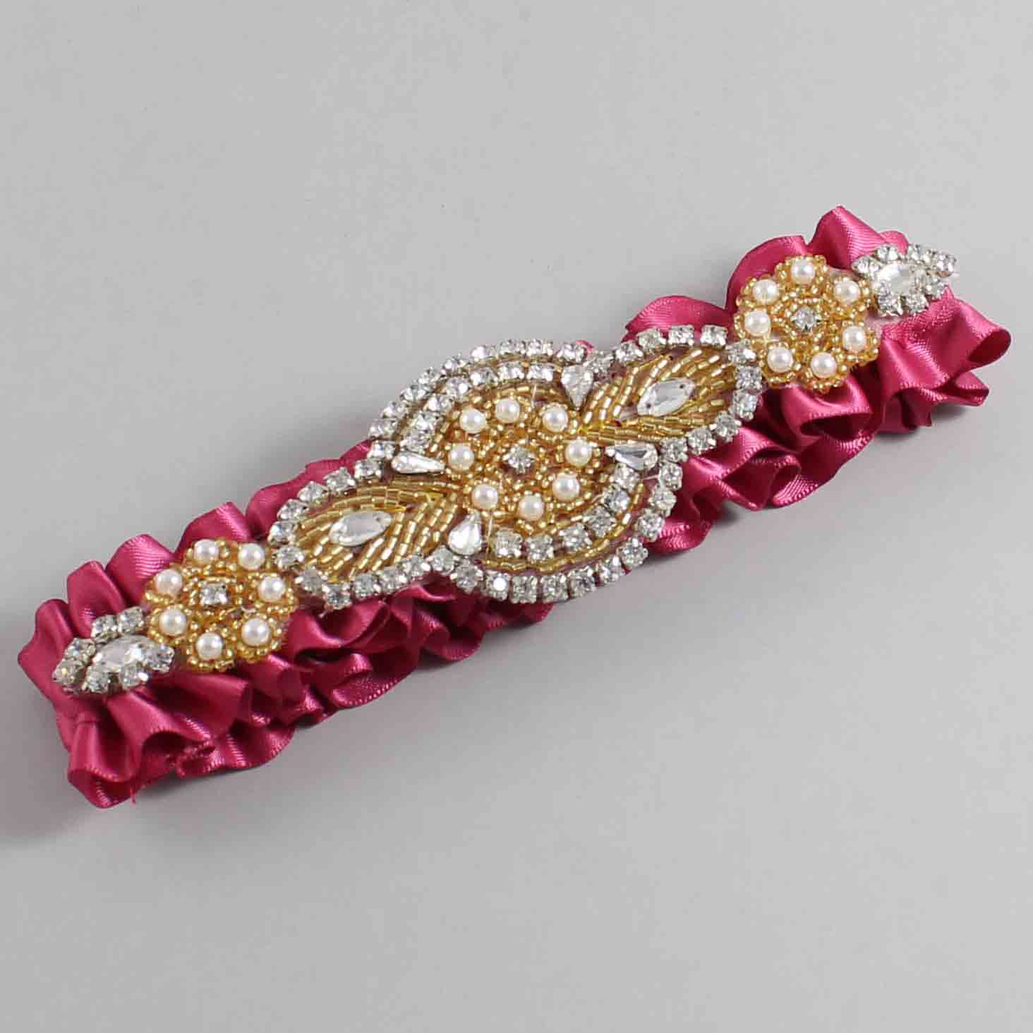 Rosewood Satin with Gold Wedding Garter / Pink Wedding Garters / Charlotte # (169-169)-01-A05-Gold