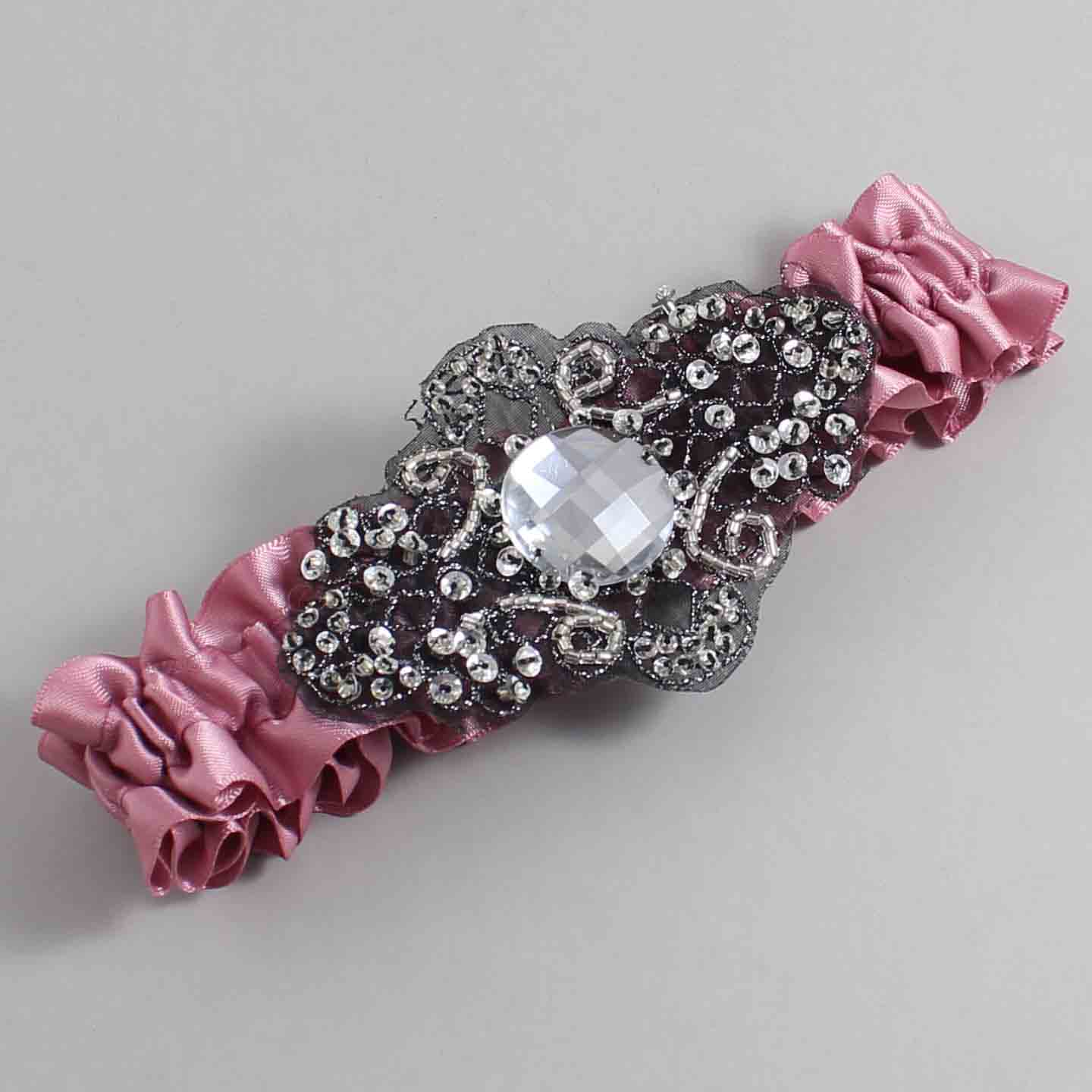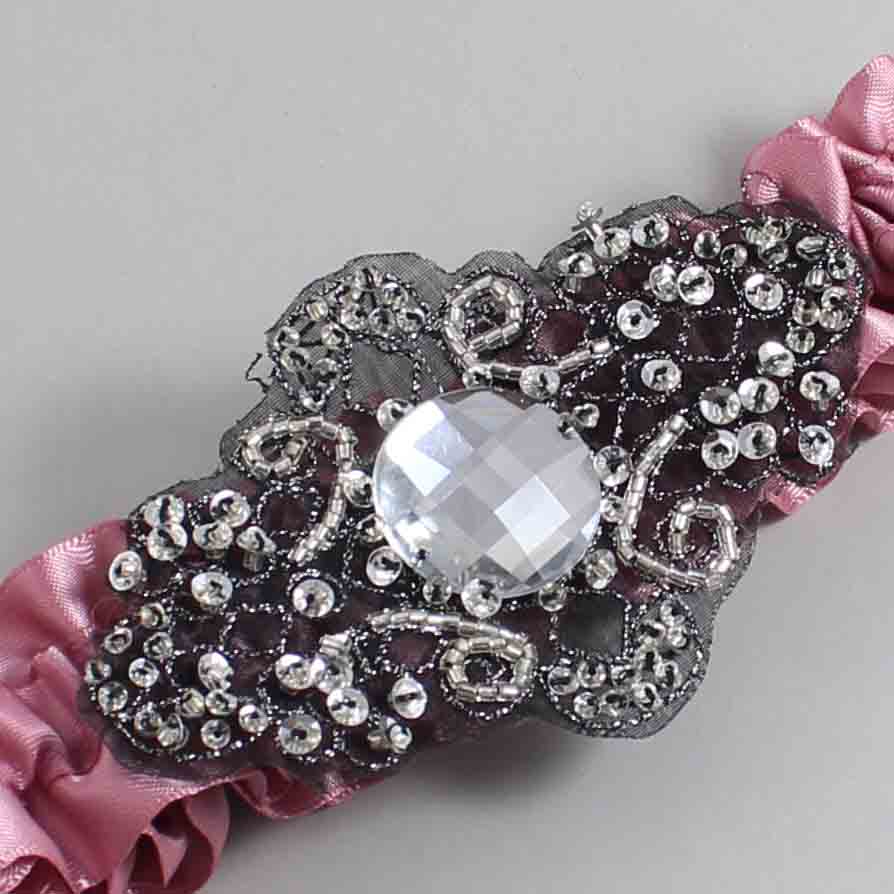 Rosy Mauve Satin with Black Wedding Garter / Pink Wedding Garters / Bijou #01-A02-(165-165)-Black