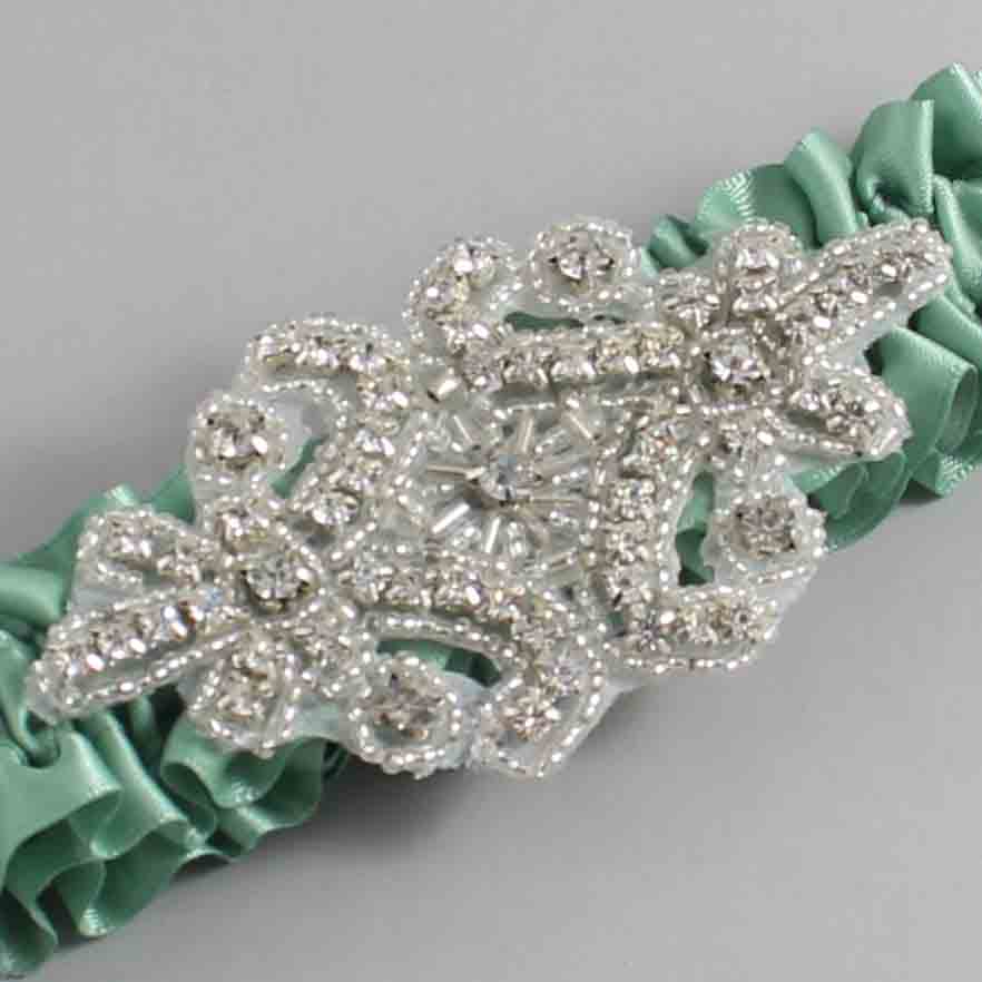 Sage Green Satin Wedding Garter / Solid Green Wedding Garters / Heather #01-A07-(577-577)-Silver