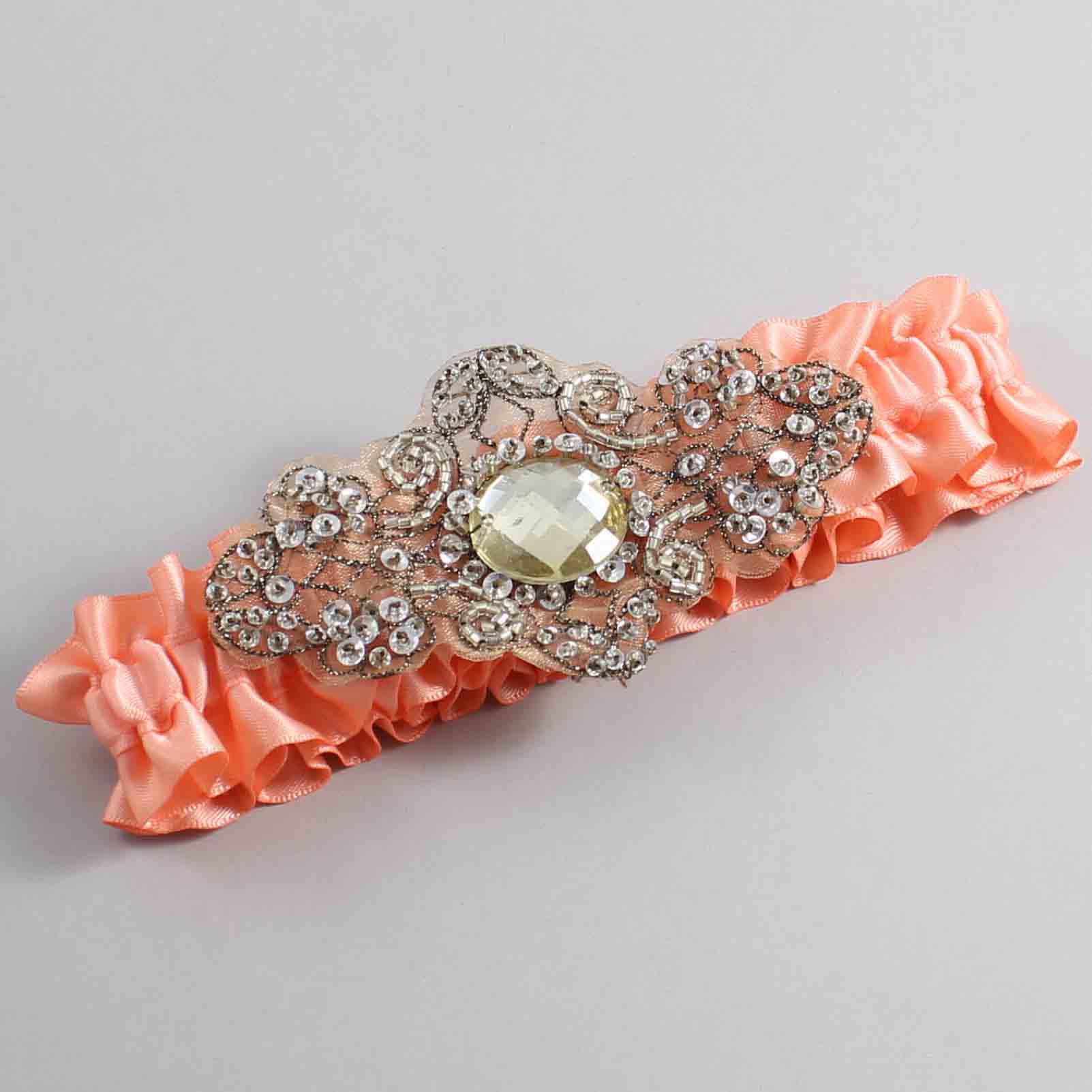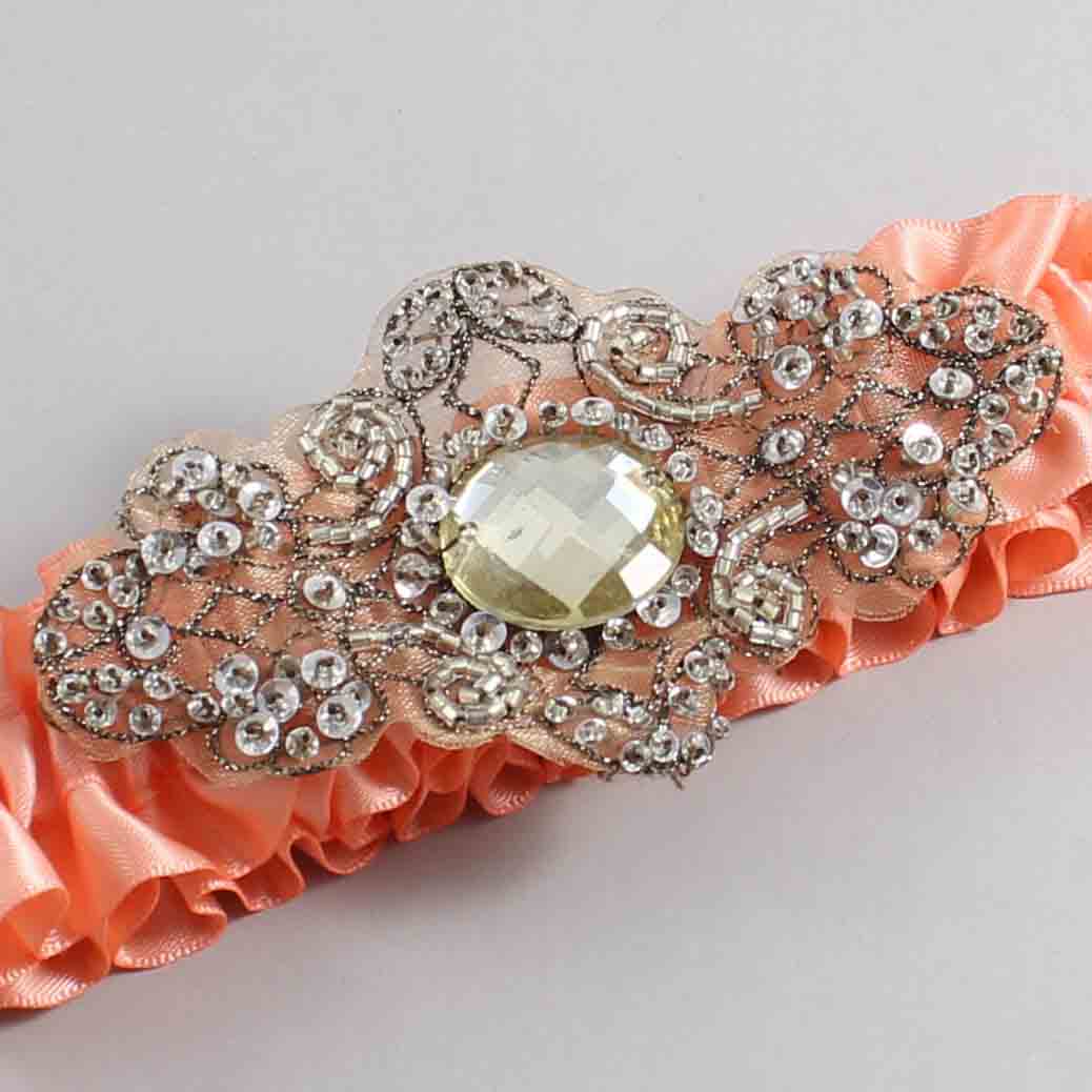 Salmon Satin with Brown Wedding Garter / Orange Wedding Garters / Bijou # 01-A01-(720-720)-Antique