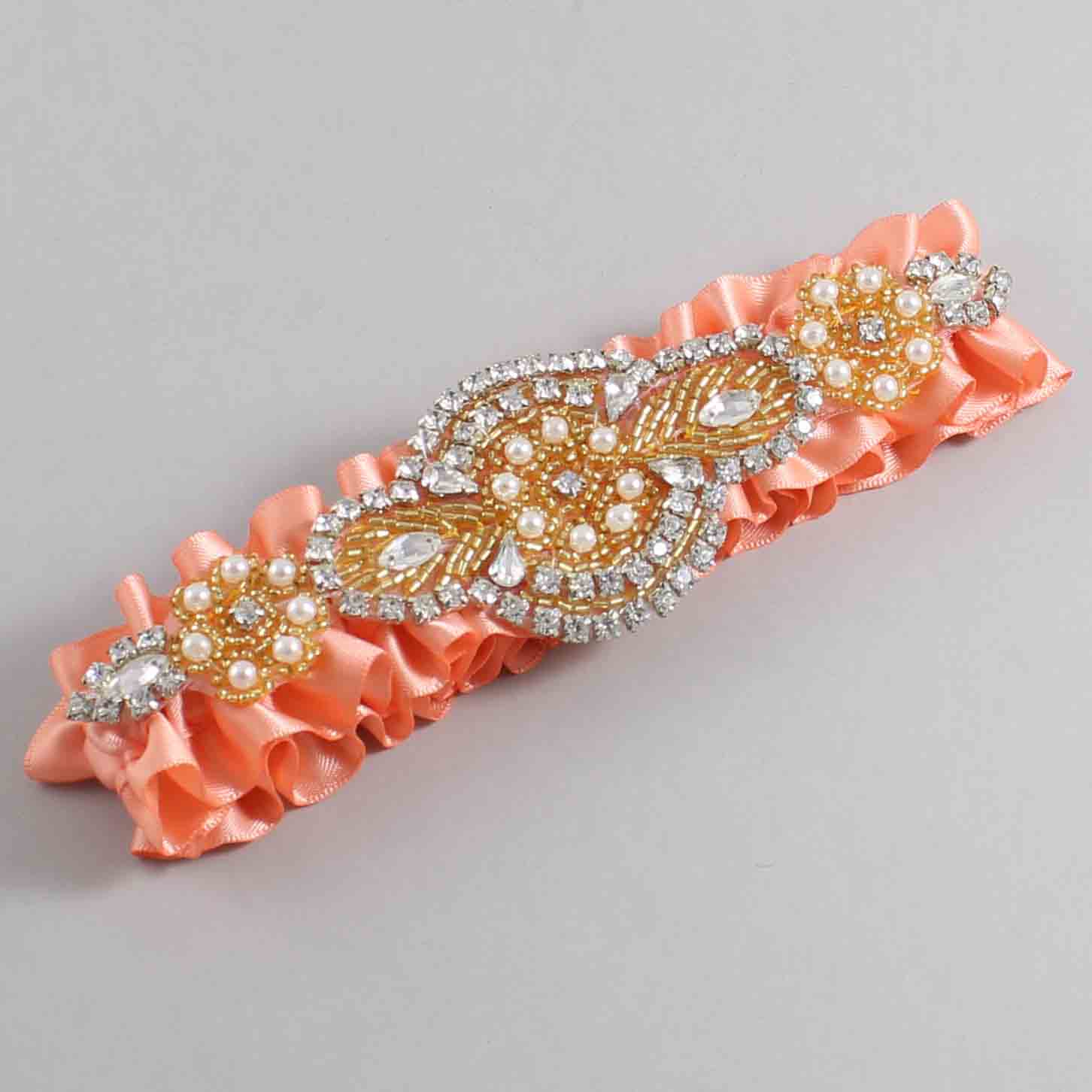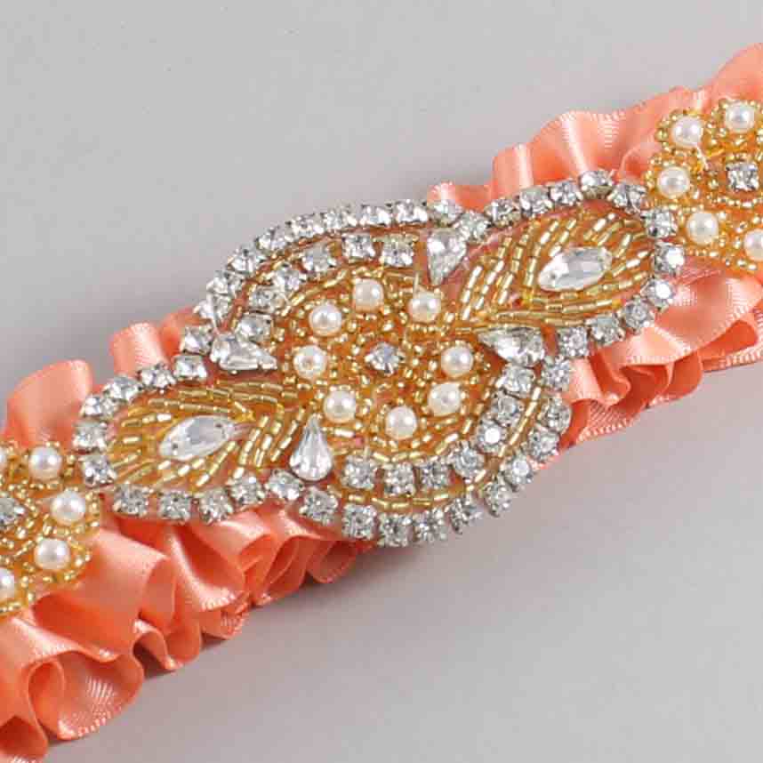 Salmon Satin with Gold Wedding Garter / Orange Wedding Garters / Charlotte #01-A05-(720-720)-Gold