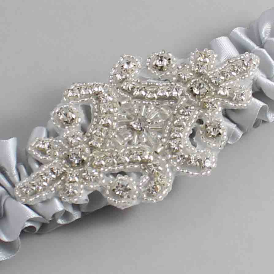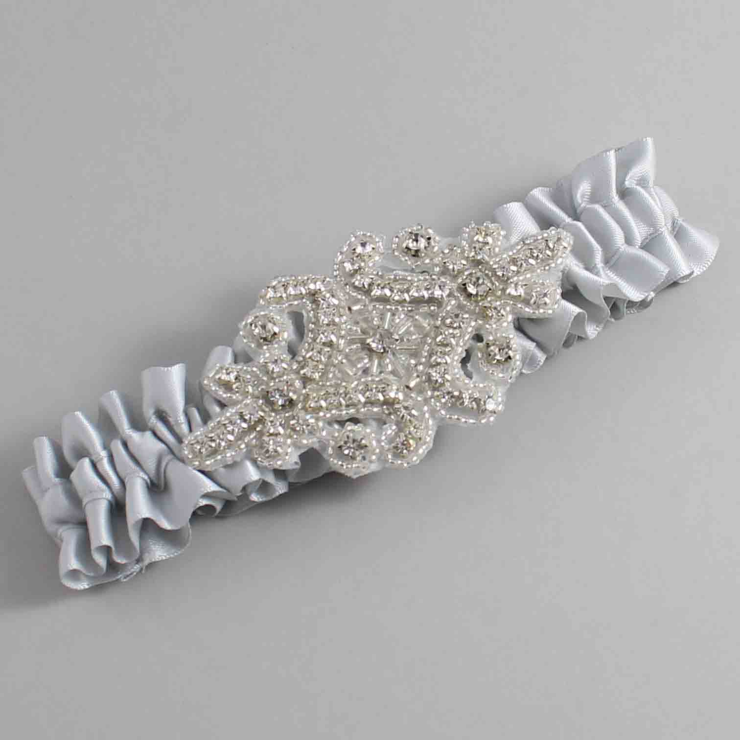 Shell Gray Satin Wedding Garter / Solid Gray Wedding Garters / Heather #01-A07-(007-007)-Silver