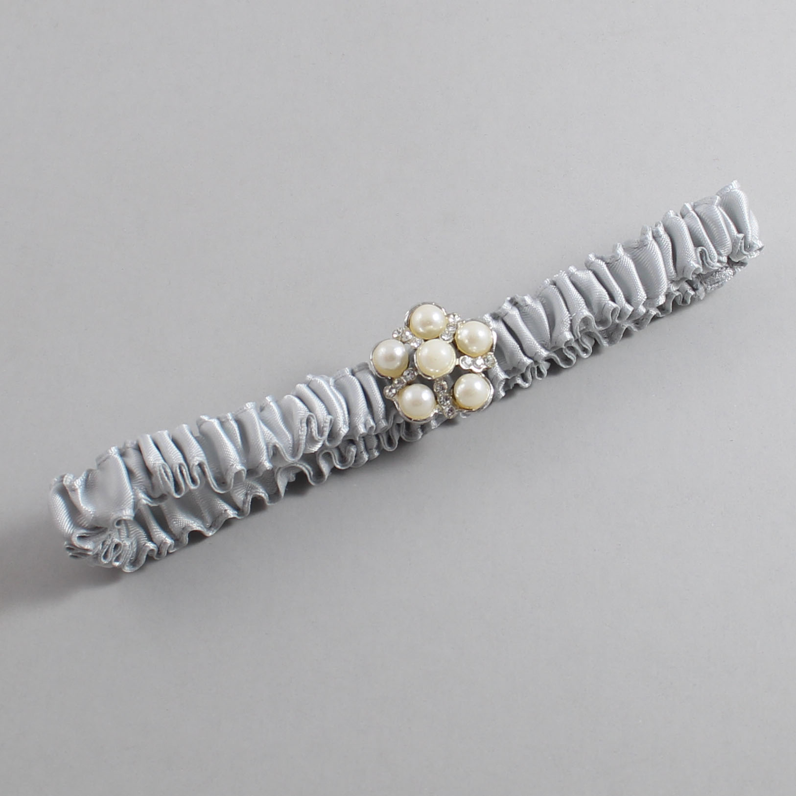Shell Gray Satin Wedding Garter / Solid Gray Wedding Garters / Liza #(007-007)-03-M13