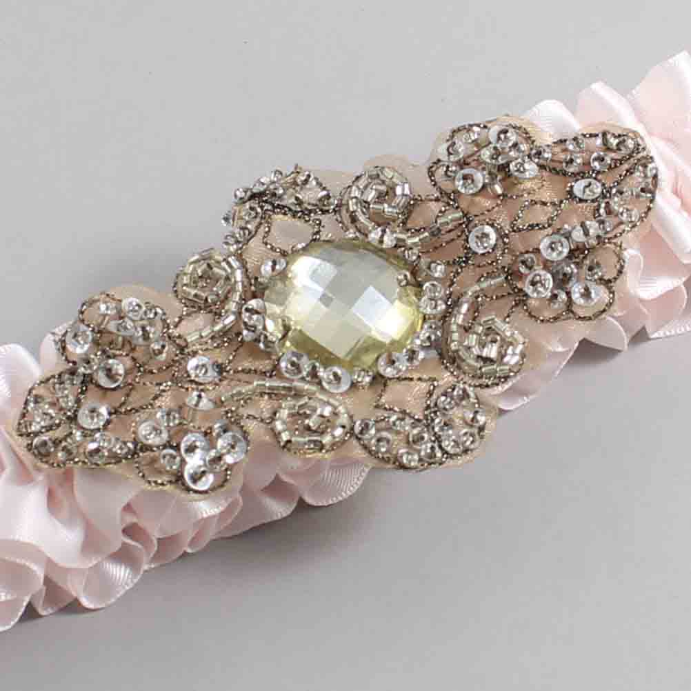 Sideshow Rose Satin with Brown Wedding Garter / Pink Wedding Garters / Bijou # 01-A01-(105-105)-Antique