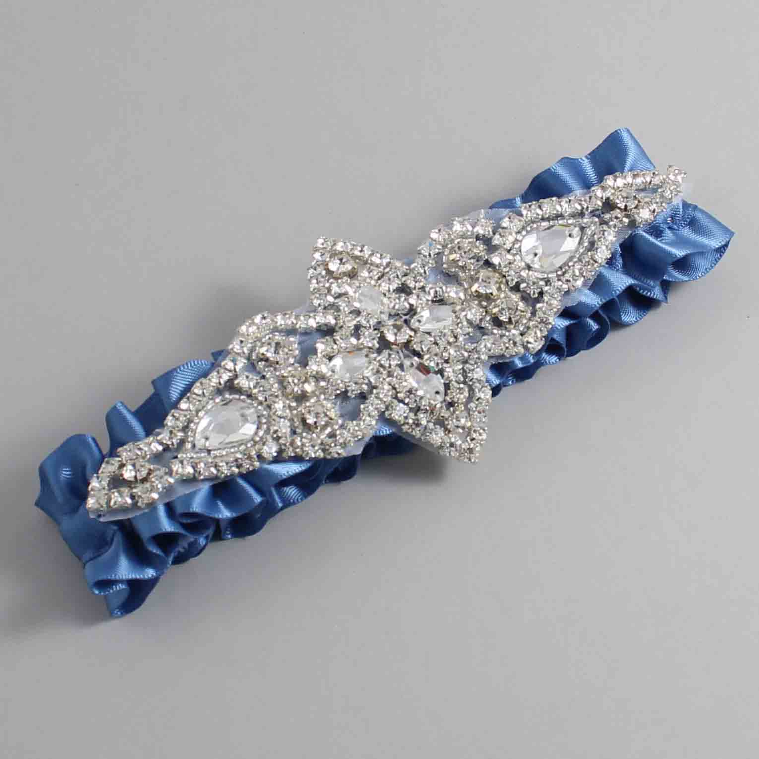 Smoke Blue Satin Wedding Garter / Solid Blue Wedding Garters / Lorine #01-A09-(363-363)-Silver