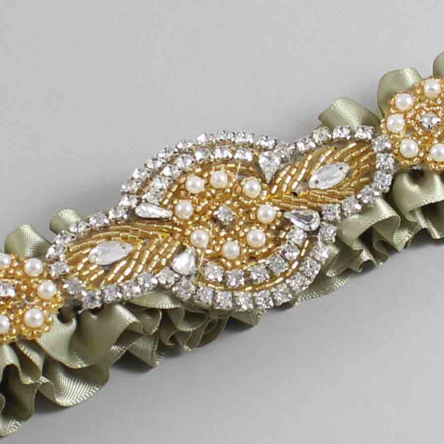 Soft Pine Satin with Gold Wedding Garter / Green Wedding Garters / Charlotte #01-A05-(566-566)-Gold