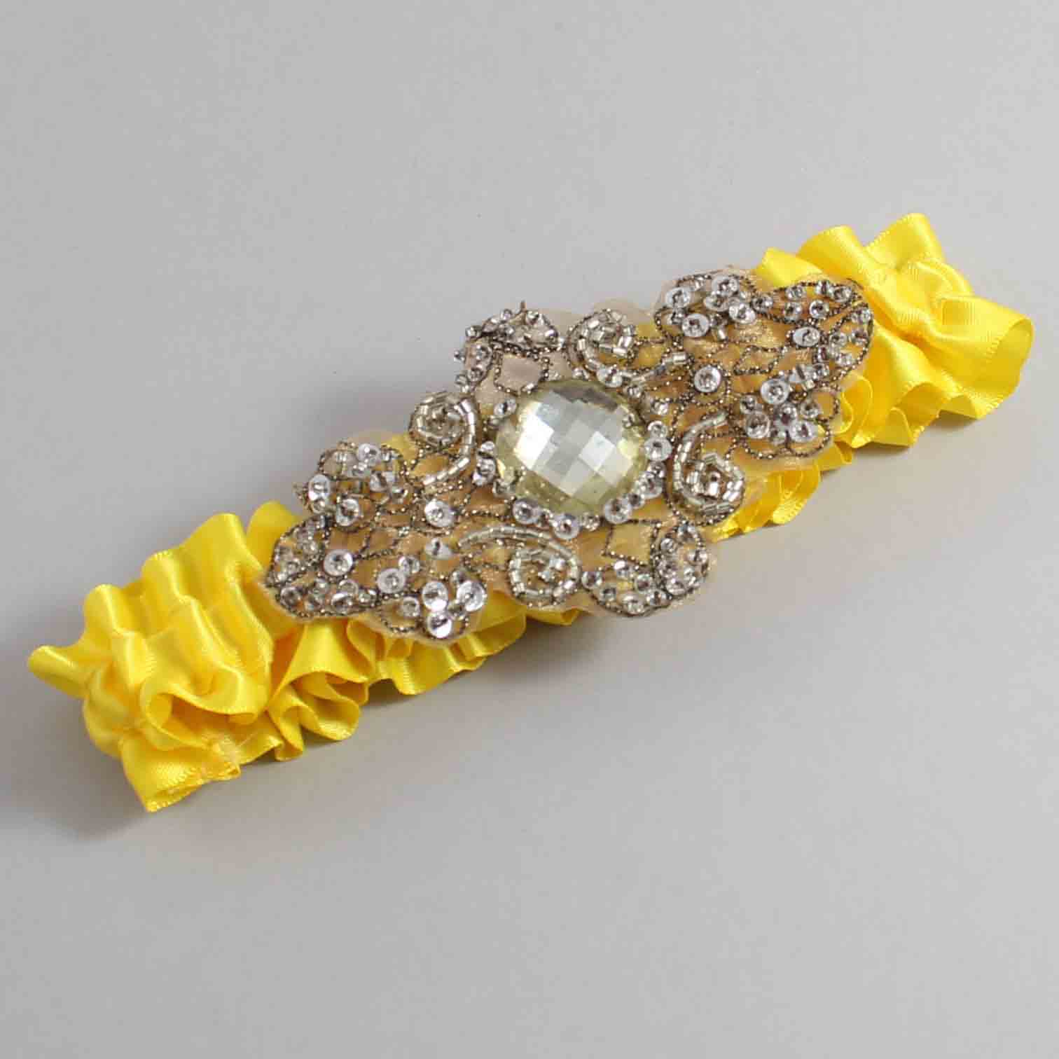 Sunglow Satin with Brown Wedding Garter / Yellow Wedding Garters / Bijou # 01-A01-(645-645)-Antique