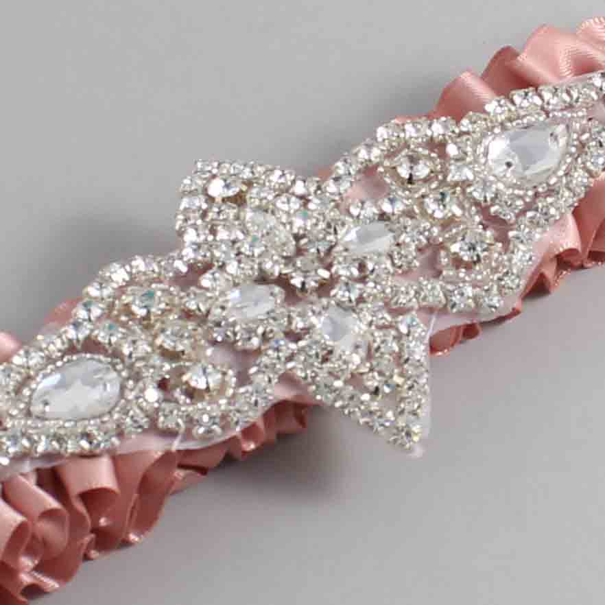 Sweet Nectar Satin Wedding Garter / Solid Pink Wedding Garters / Lorine #01-A09-(161-161)-Silver