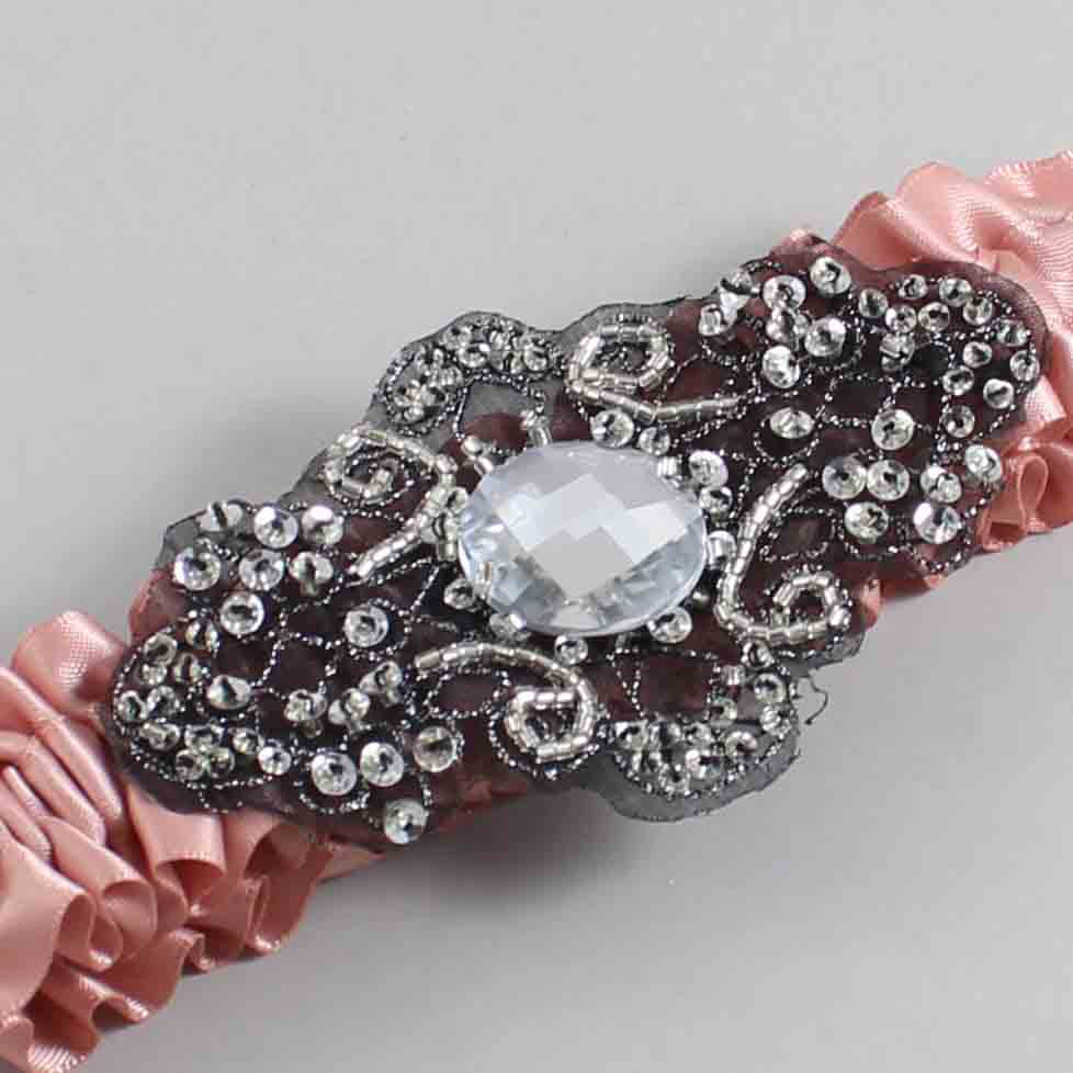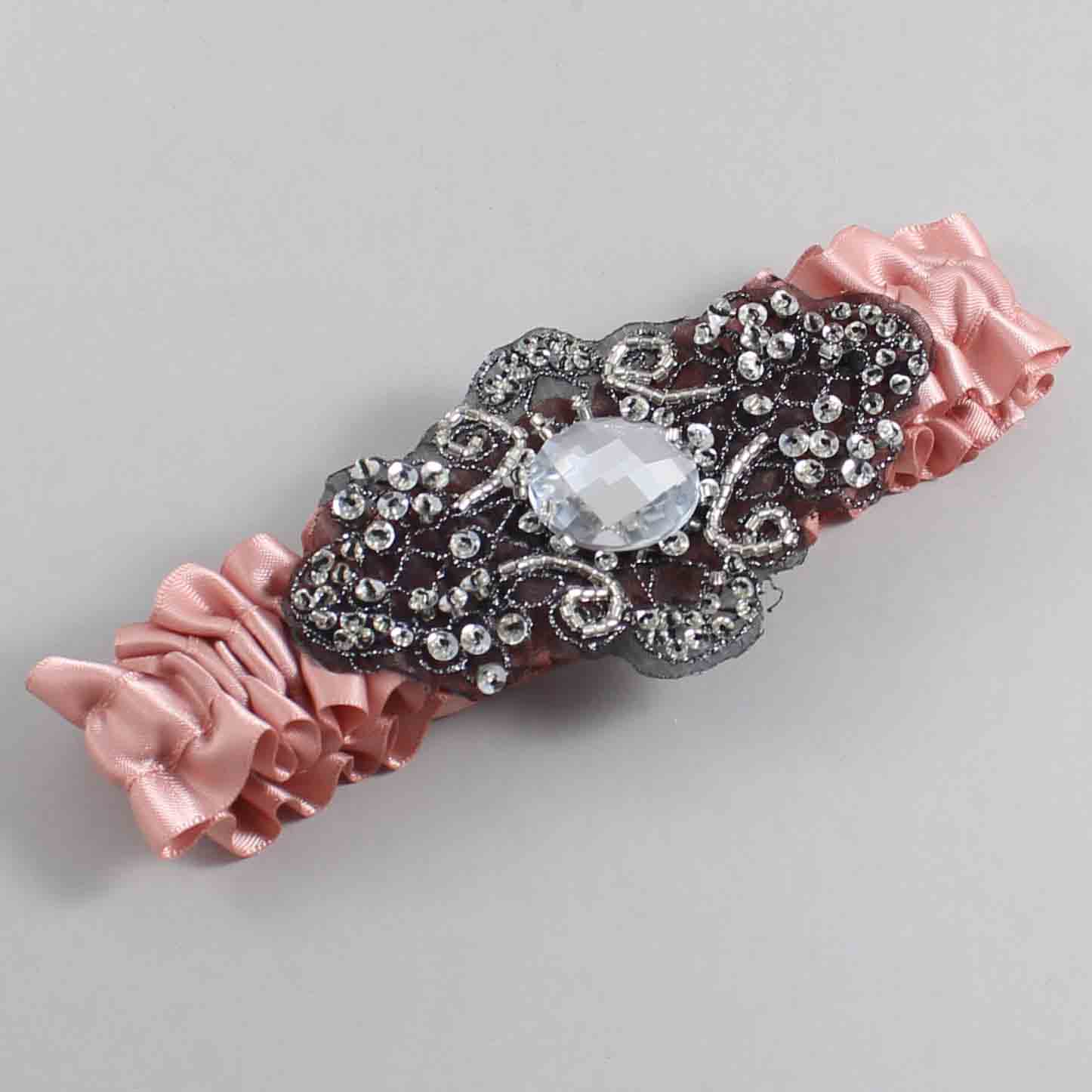Sweet Nectar Satin with Black Wedding Garter / Pink Wedding Garters / Bijou #01-A02-(161-161)-Black