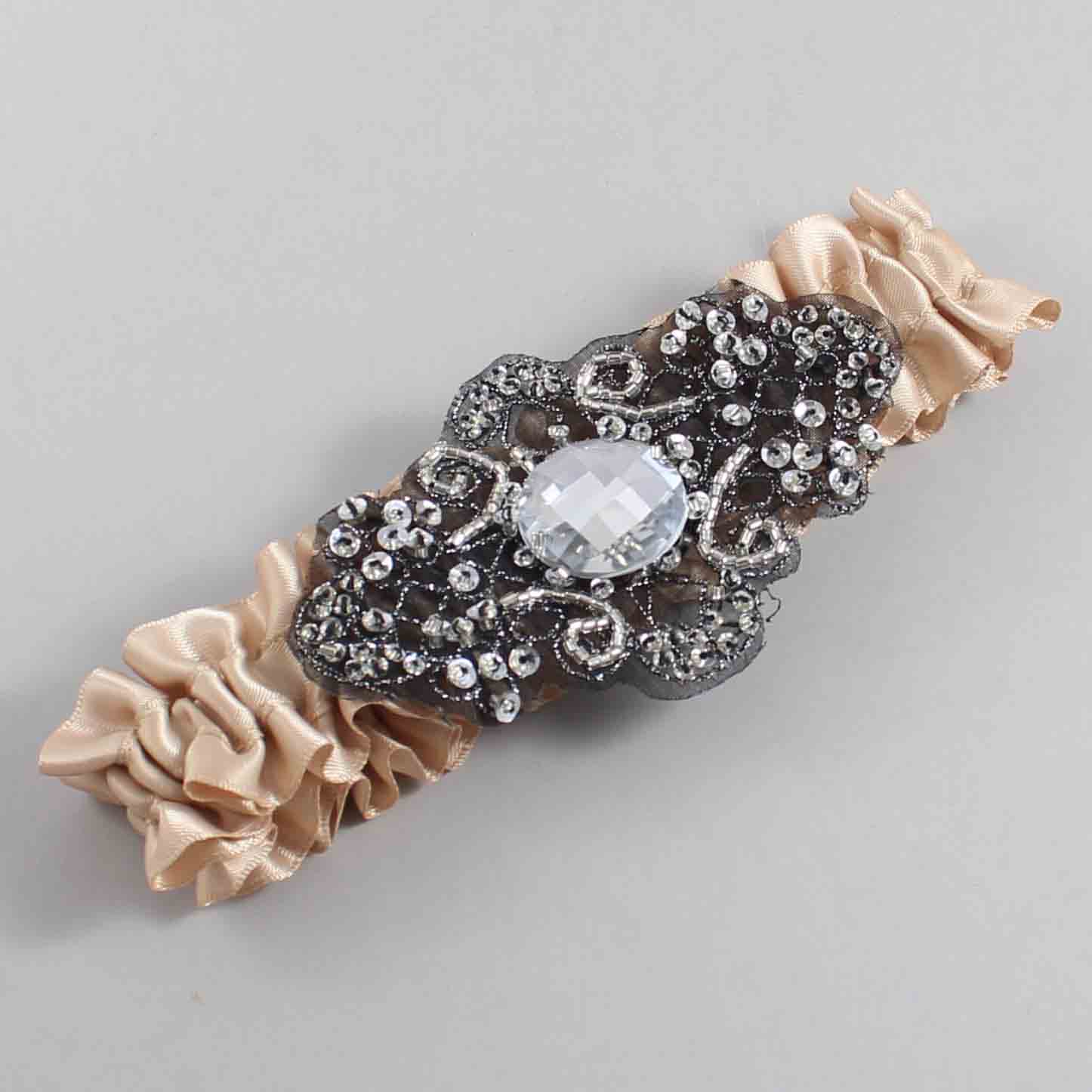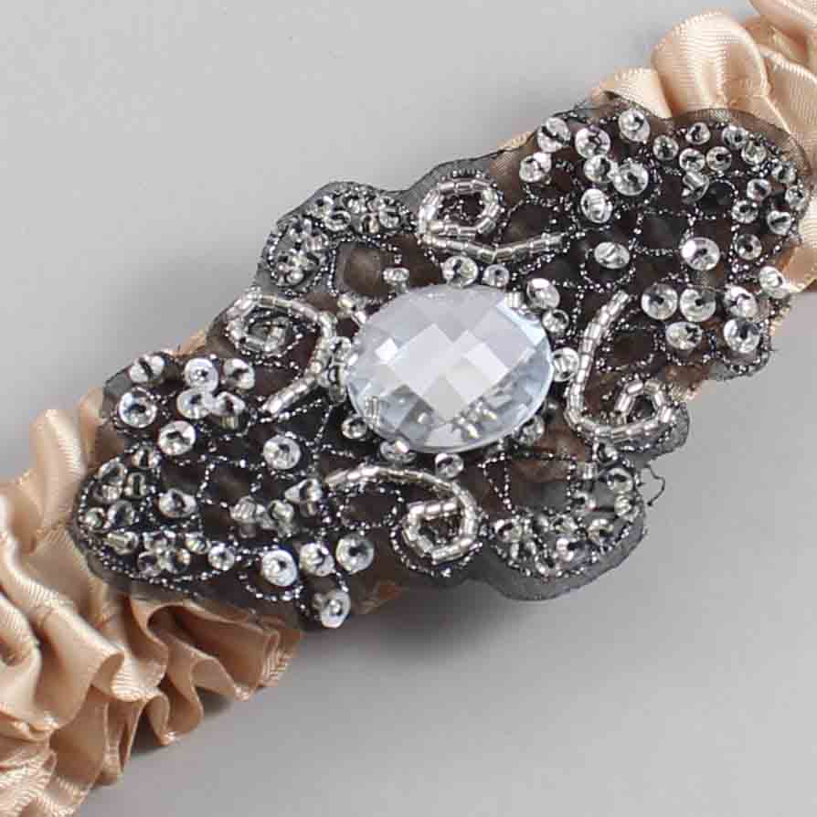 Tan Satin with Black Wedding Garter / Brown Wedding Garters / Bijou #01-A02-(892-892)-Black