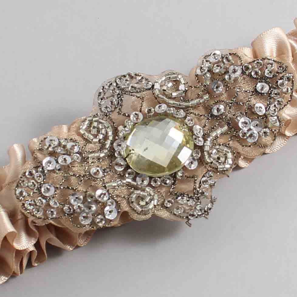 Tan Satin with Brown Wedding Garter / Brown Wedding Garters / Bijou # 01-A01-(892-892)-Antique