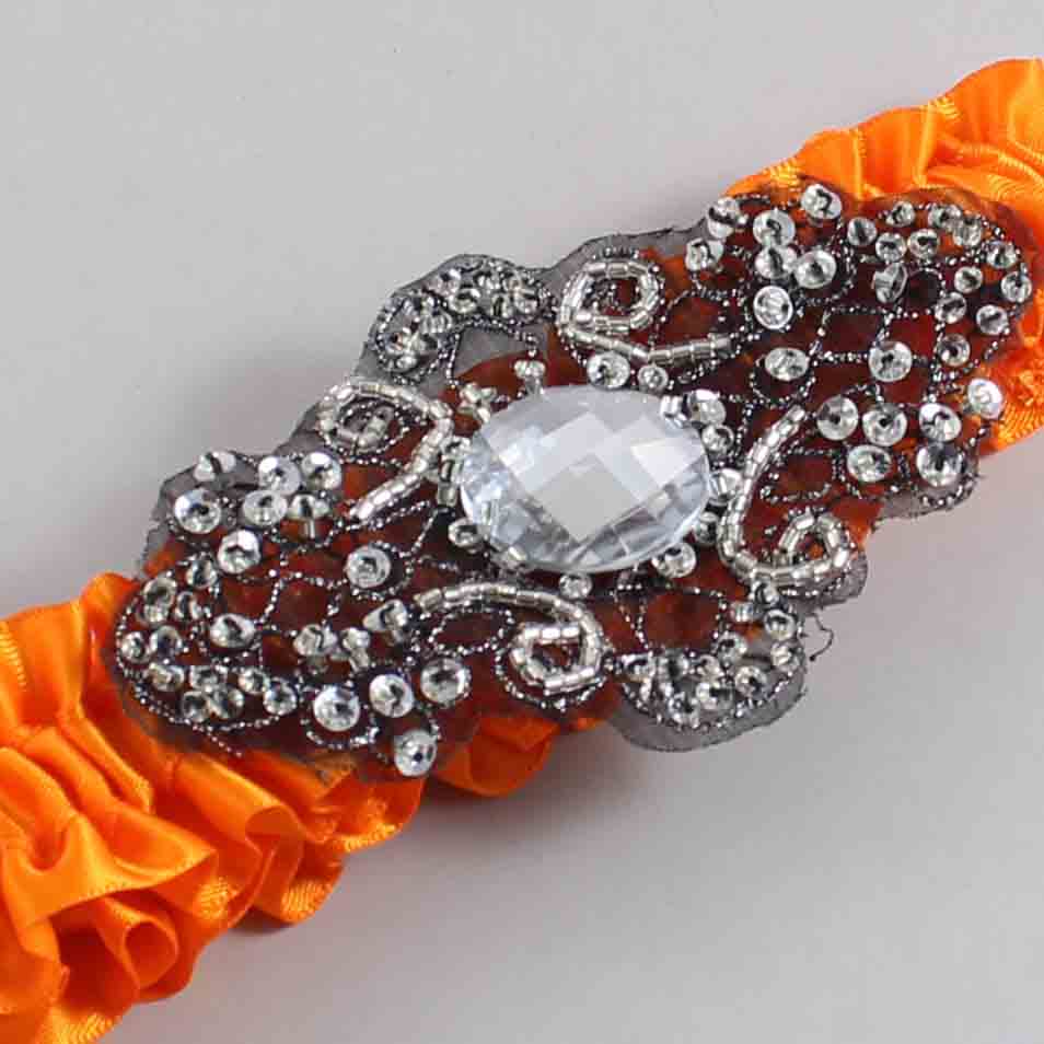 Tangerine Satin with Black Wedding Garter / Orange Wedding Garters / Bijou #01-A02-(668-668)-Black