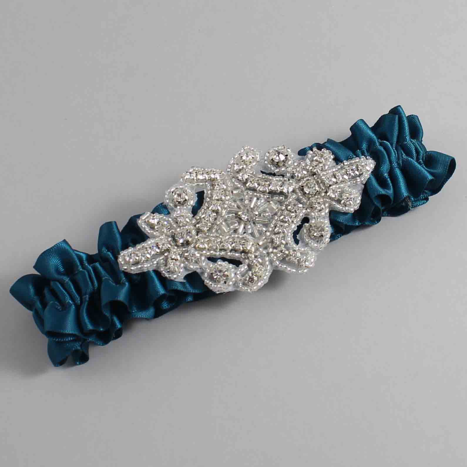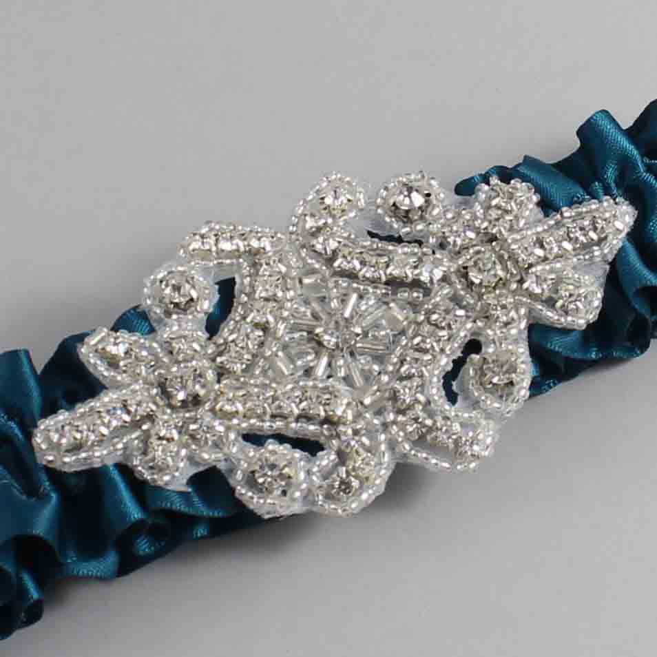 Teal Satin Wedding Garter / Solid Teal Wedding Garters / Heather #01-A07-(347-347)-Silver