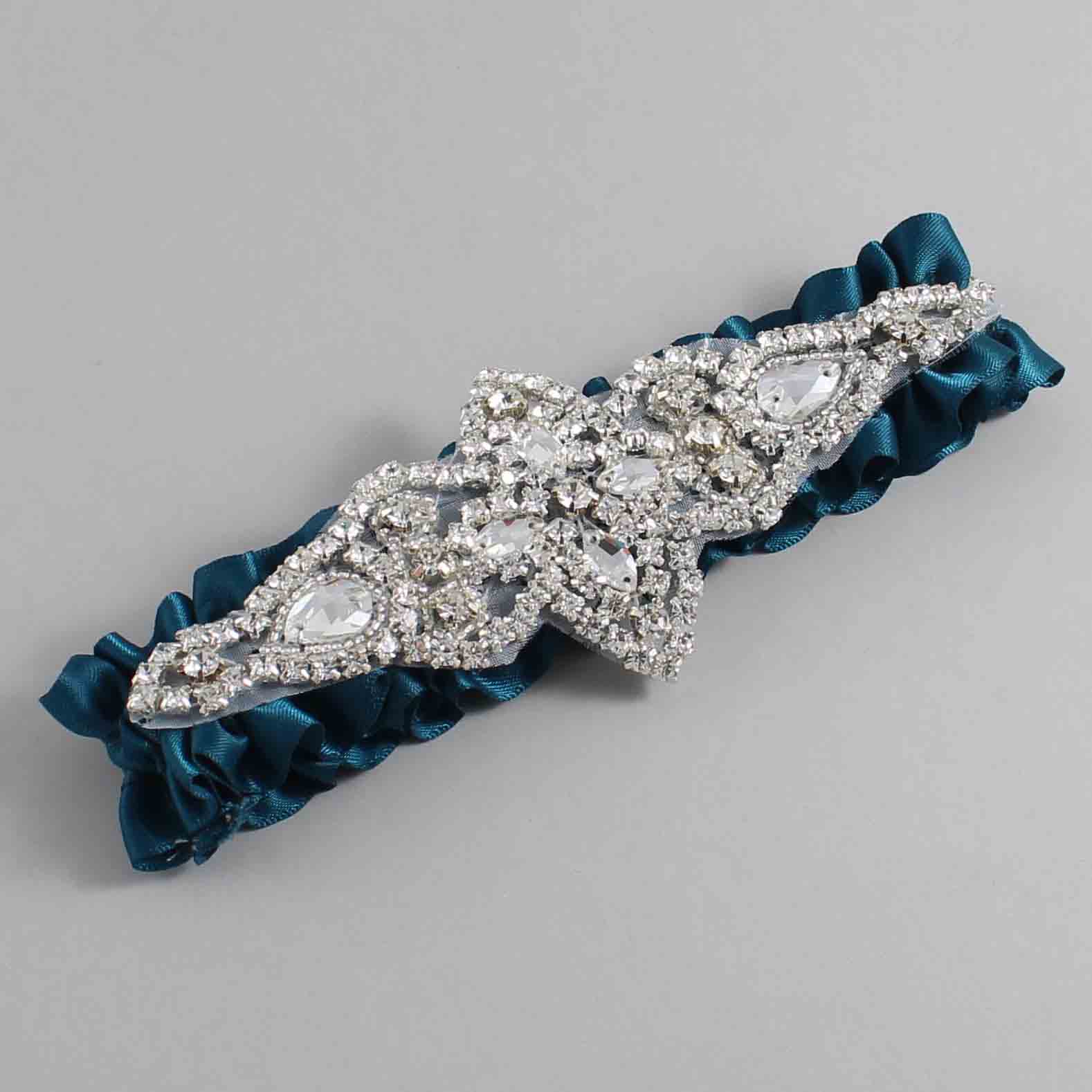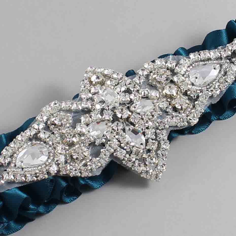 Teal Satin Wedding Garter / Solid Teal Wedding Garters / Lorine #01-A09-(347-347)-Silver