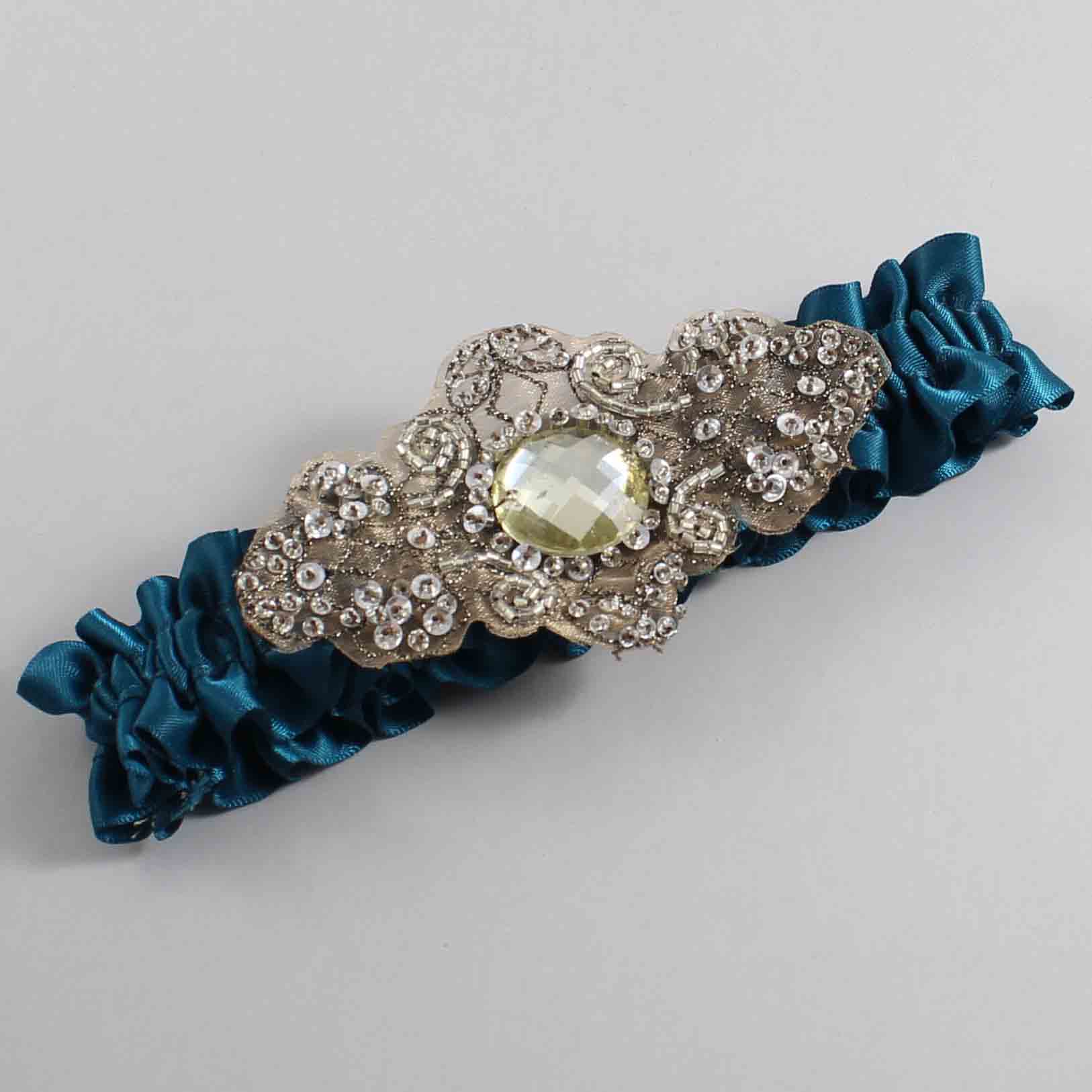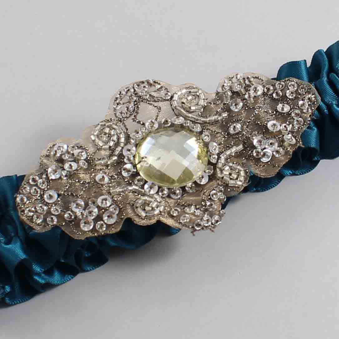 Teal Satin with Brown Wedding Garter / Teal Wedding Garters / Bijou # 01-A01-(347-347)-Antique
