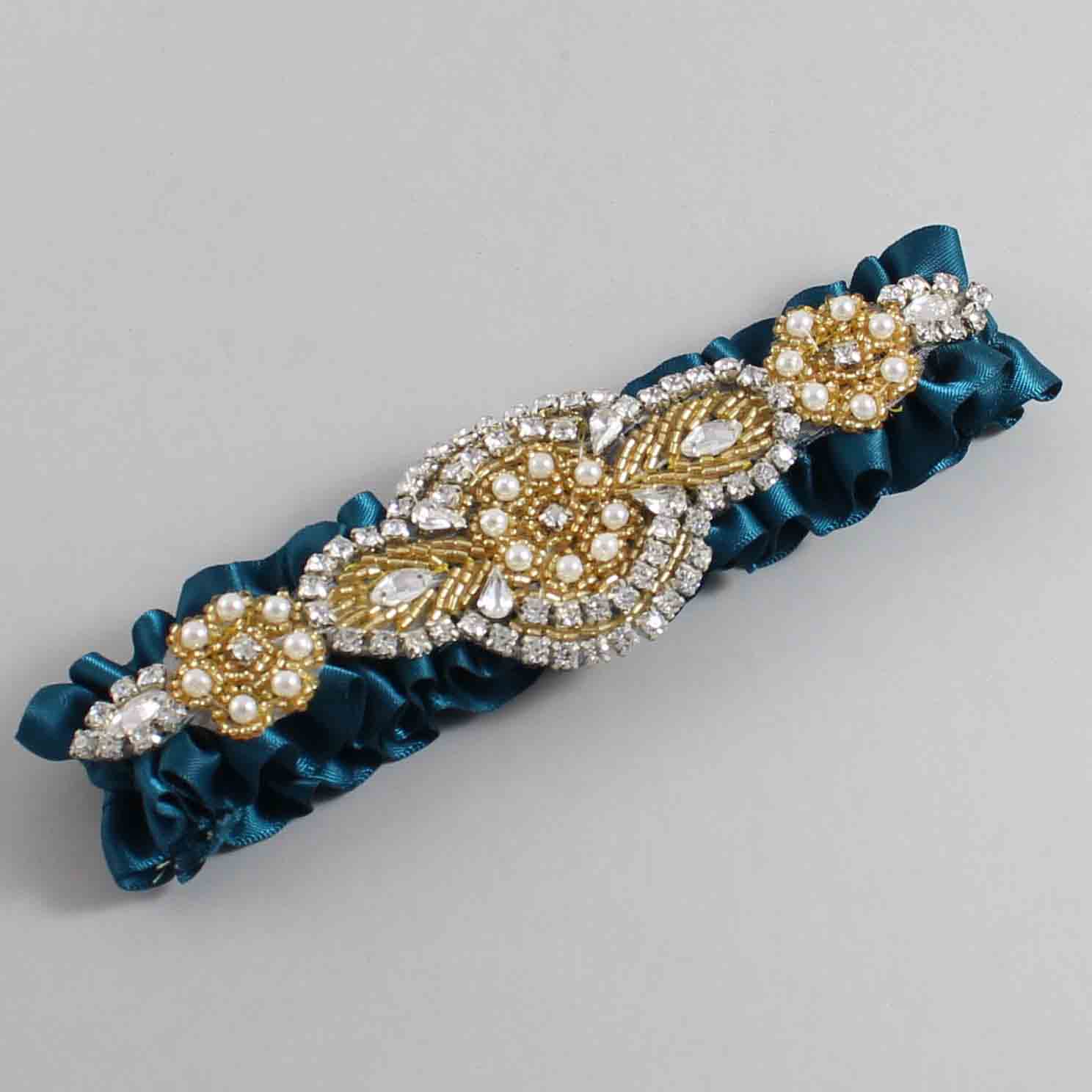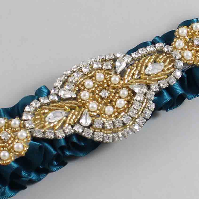 Home » Shop » Shop by Color » Shop by Satin Color » Teal Wedding Garters 347 » Teal Satin with Gold Wedding Garter / Teal Wedding Garters / Charlotte # (347-347)-01-A05-Gold