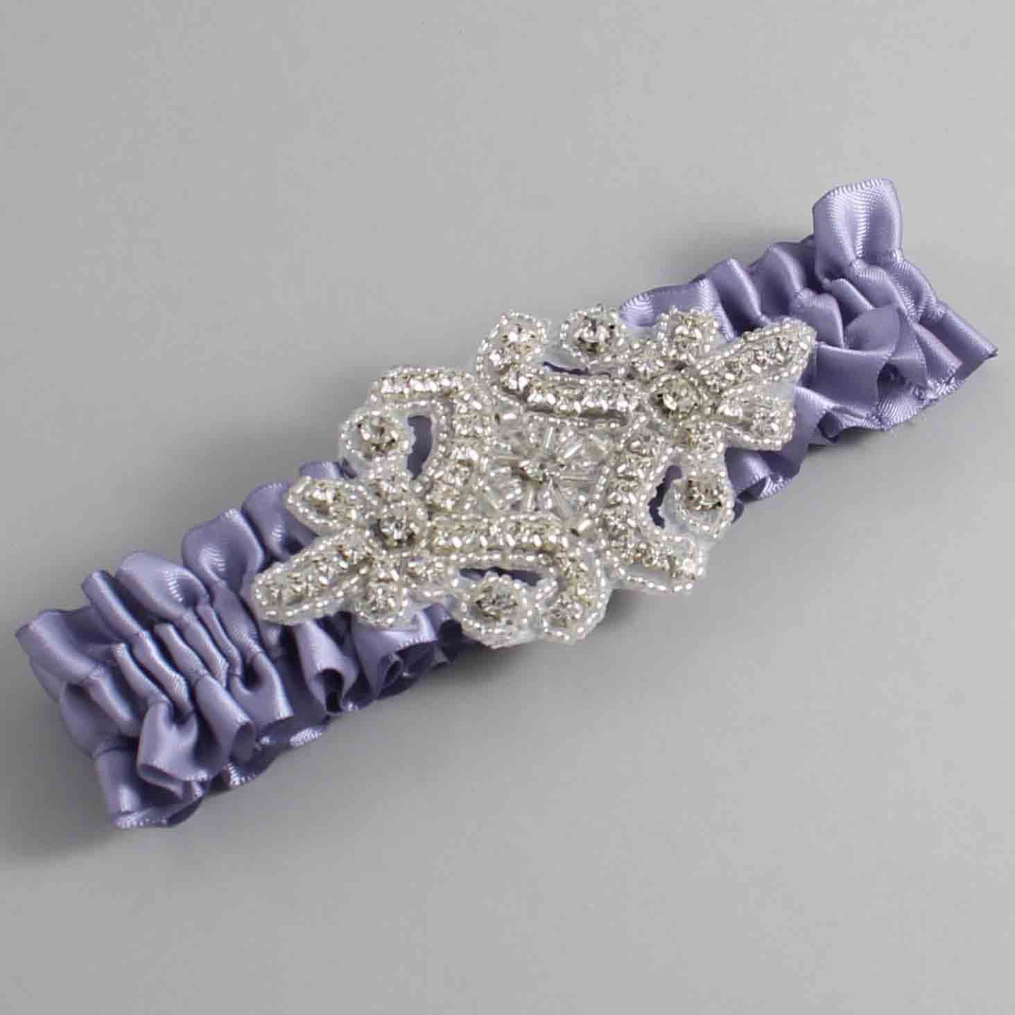 Thistle Satin Wedding Garter / Solid Purple Wedding Garters / Heather #01-A07-(435-435)-Silver