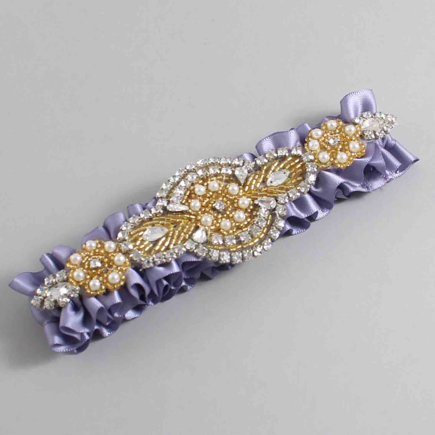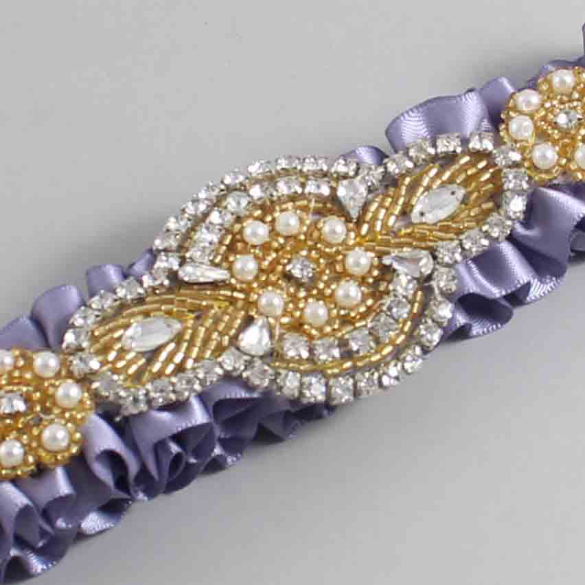 Thistle Satin with Gold Wedding Garter / Purple Wedding Garters / Charlotte #01-A05-(435-435)-Gold