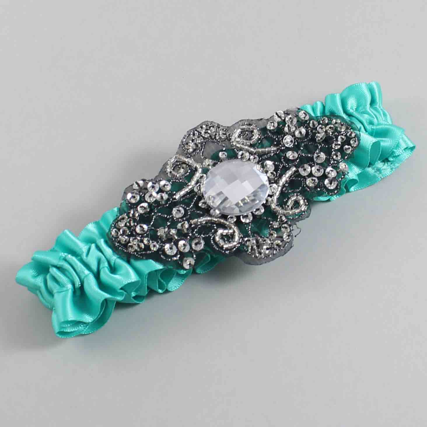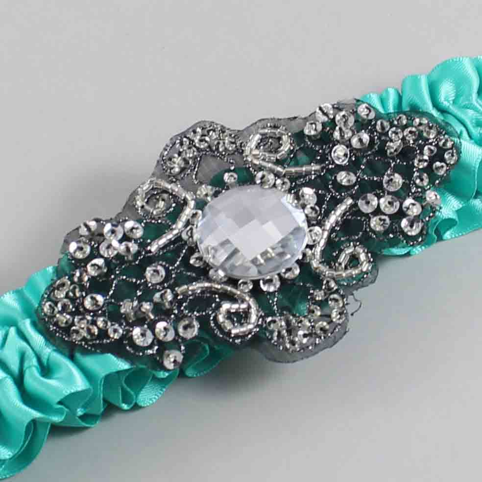 Tropic Satin with Black Wedding Garter / Teal Wedding Garters / Bijou #01-A02-(323-323)-Black