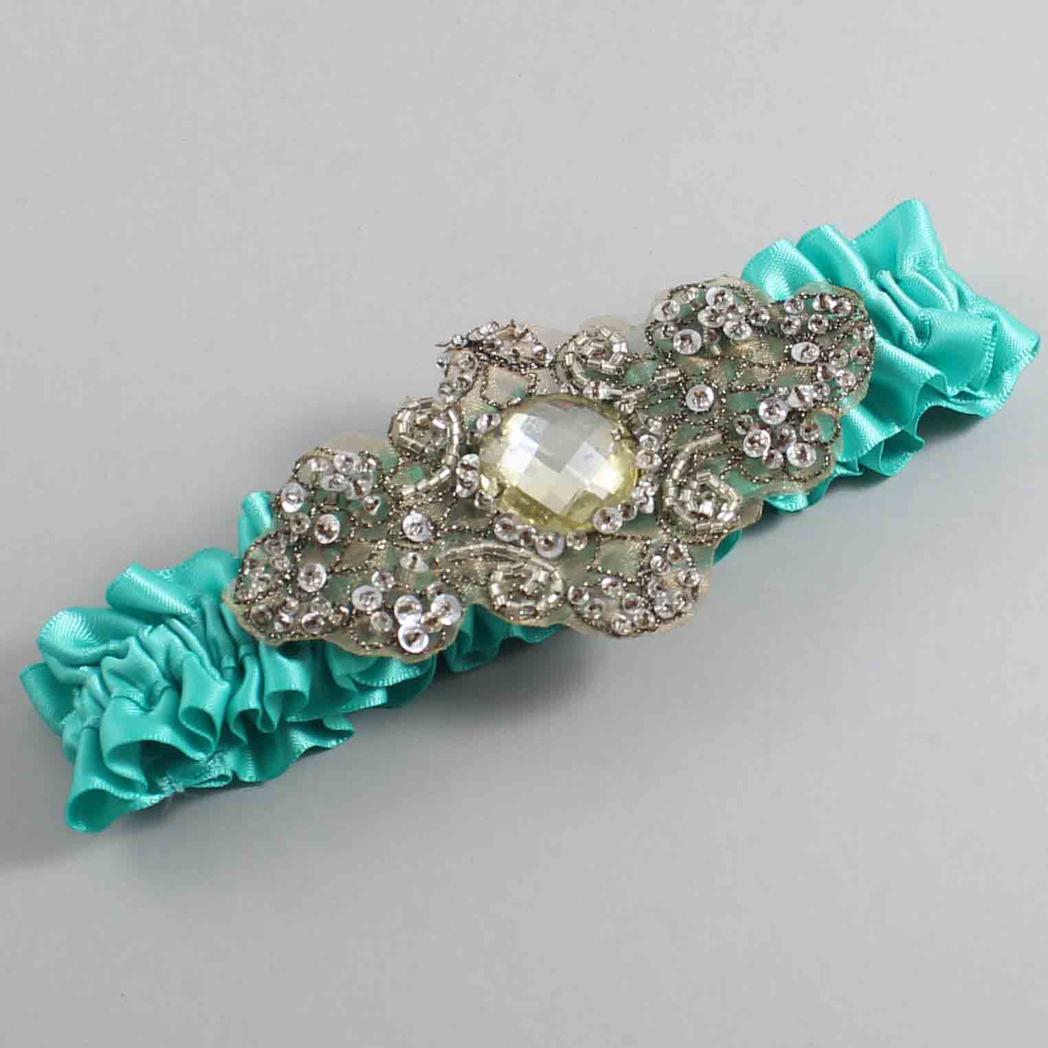 Tropic Satin with Brown Wedding Garter / Teal Wedding Garters / Bijou # 01-A01-(323-323)-Antique