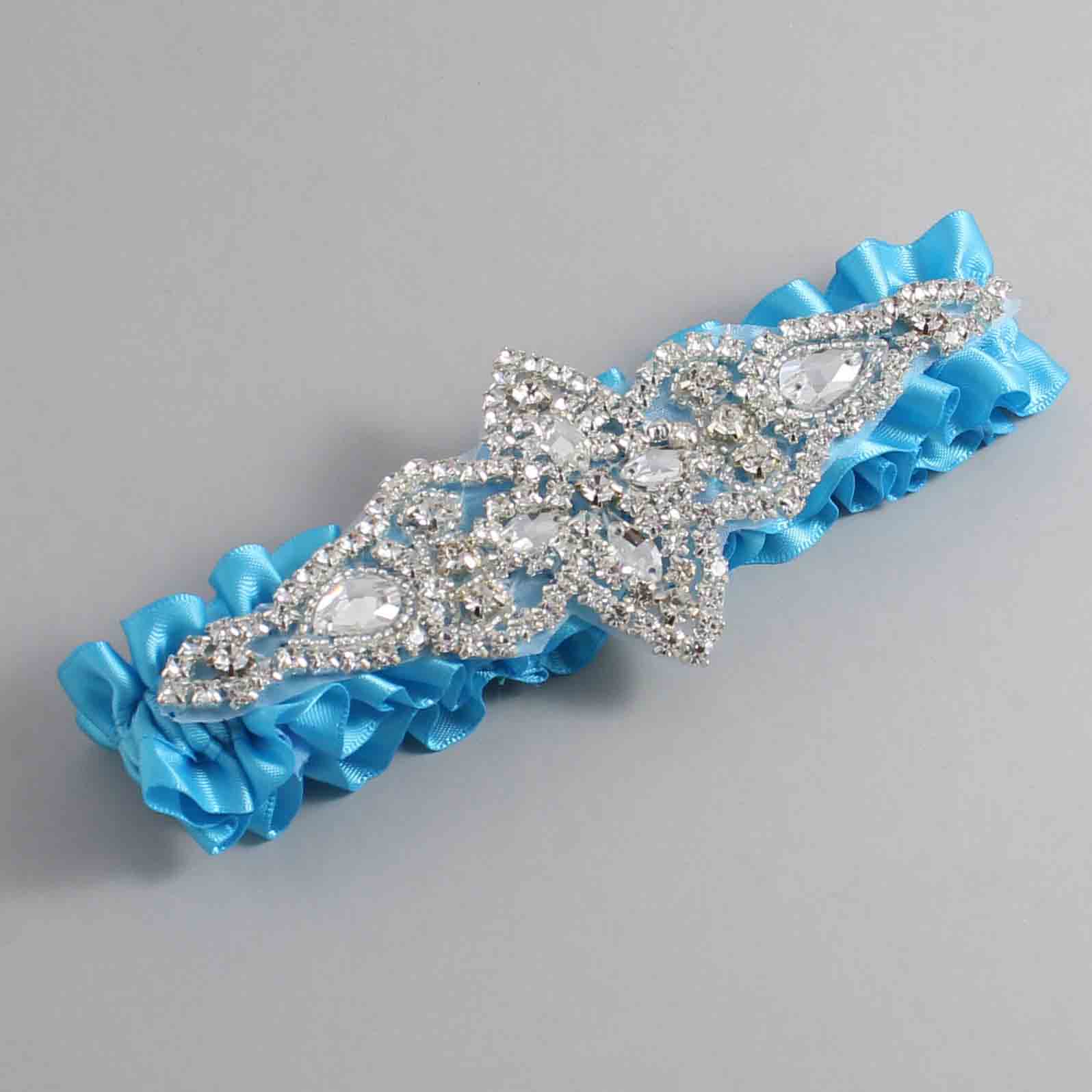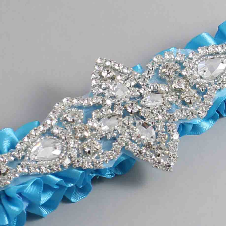 Turquoise Satin Wedding Garter / Solid Blue Wedding Garters / Lorine #01-A09-(340-340)-Silver