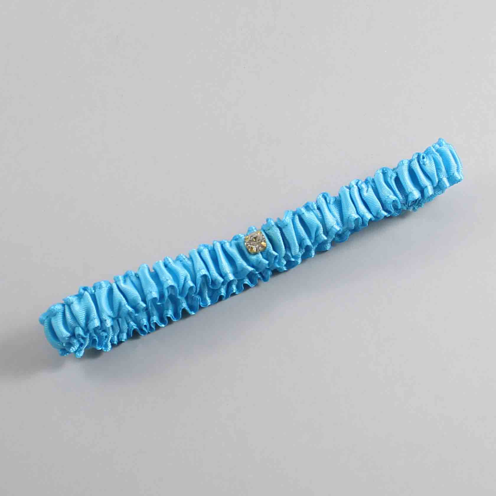 Turquoise Satin Wedding Garter / Solid Blue Wedding Garters / Solitaire #(340-340)-03-M03