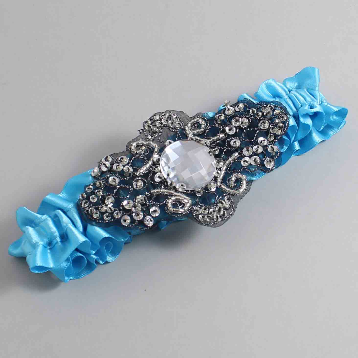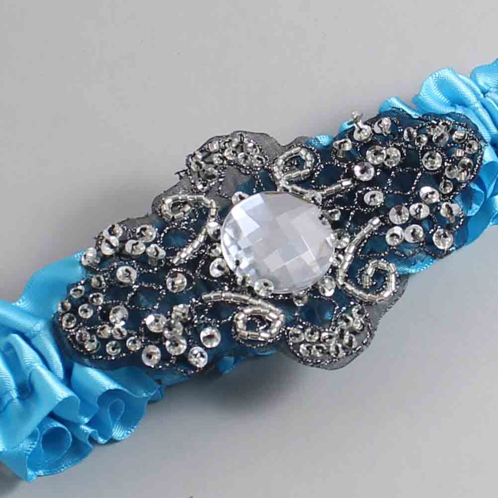 Turquoise Satin with Black Wedding Garter / Blue Wedding Garters / Bijou #01-A02-(340-340)-Black