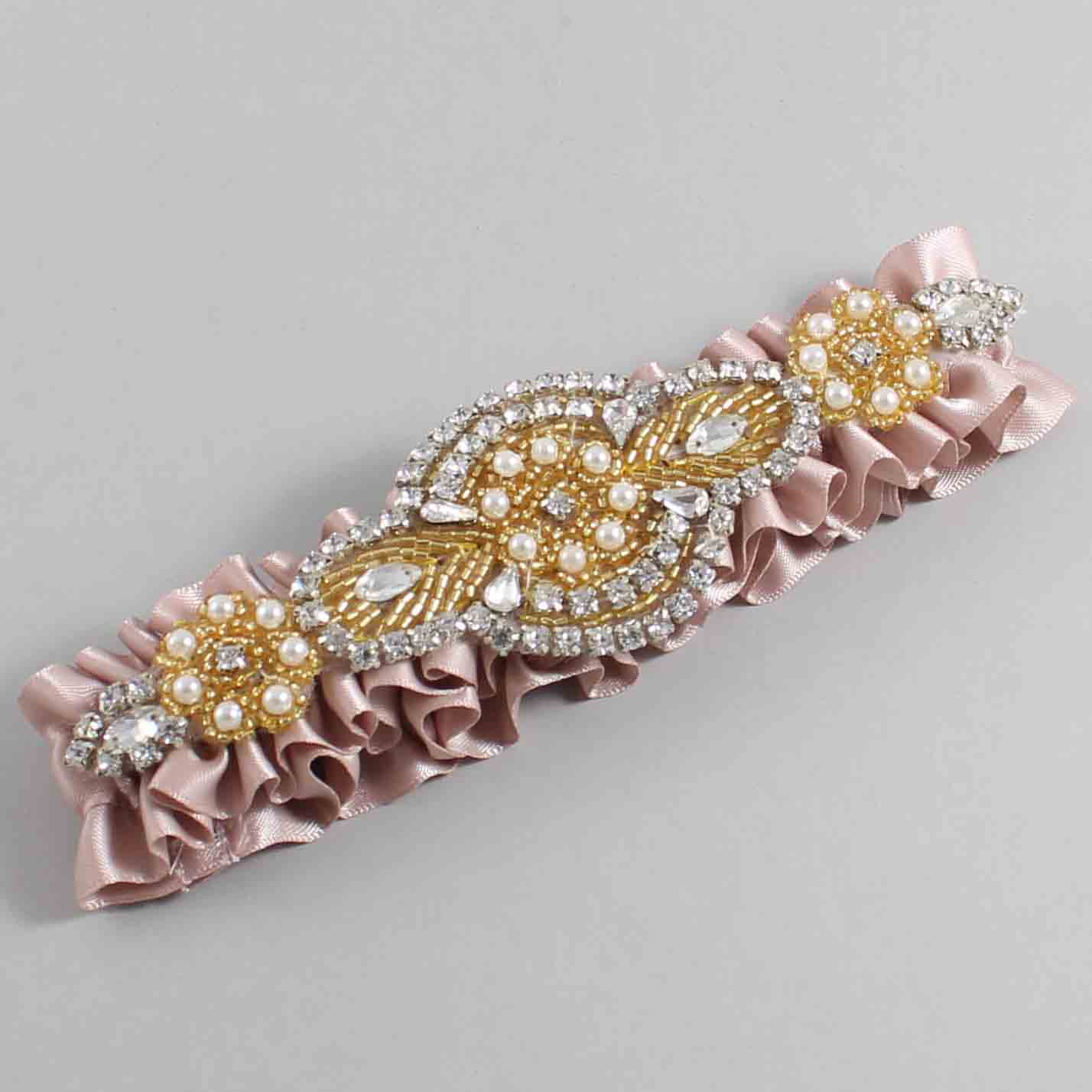 Vanilla Satin with Gold Wedding Garter / Brown Wedding Garters / Charlotte #01-A05-(813-813)-Gold