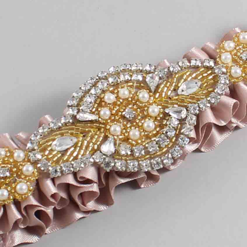 - Meticulously hwith beaded Gold Bead with Pearl Rhinestone Applique, Made with Glass Fire Polished Beads, Rhinestones with Pearls (100% Nylon).