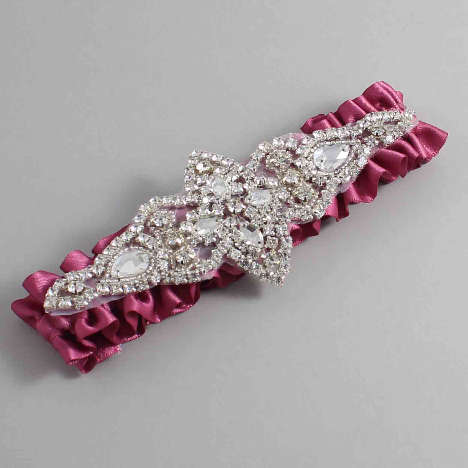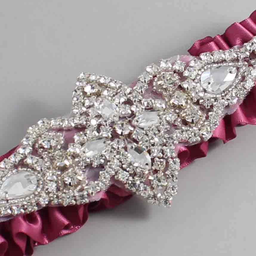 Victorian Rose Satin Wedding Garter / Solid Pink Wedding Garters / Lorine #01-A09-(174-174)-Silver