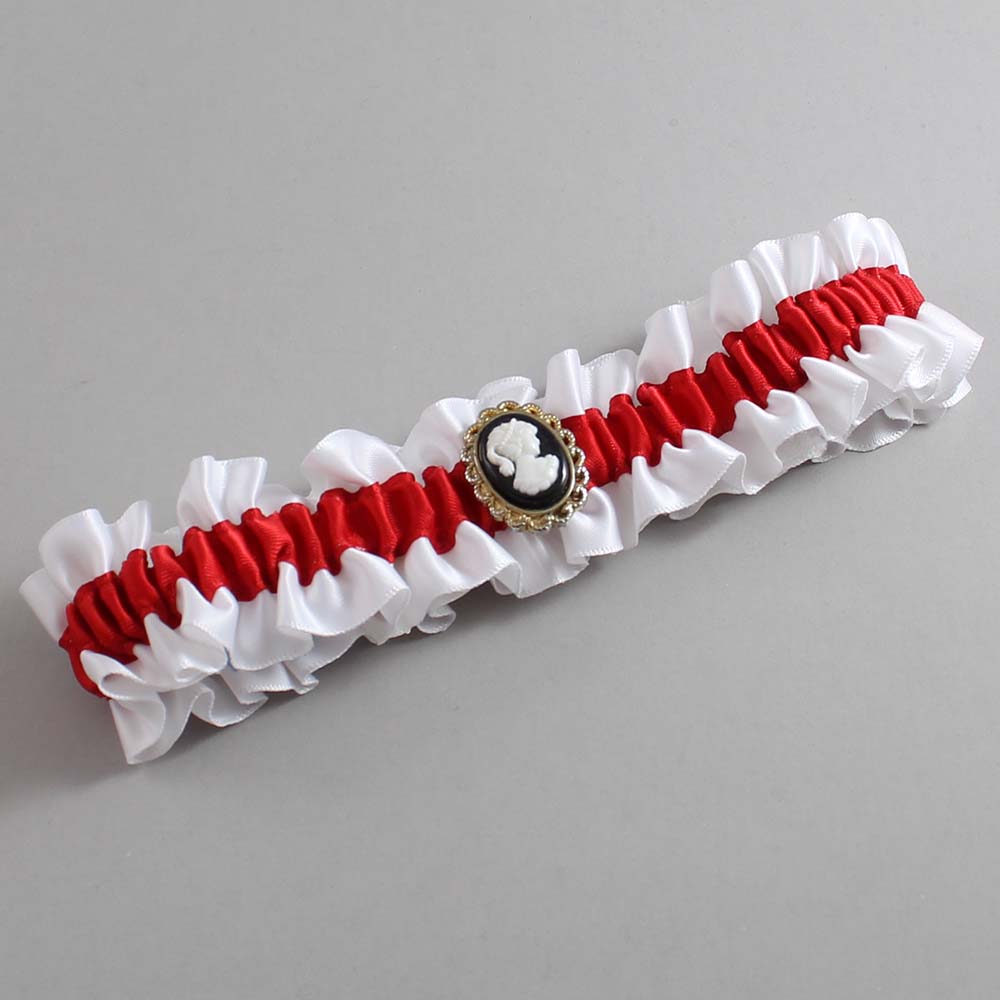 White and Red Satin Wedding Garter / White and Red Wedding Garters / Cally # (112-299)-01-M15