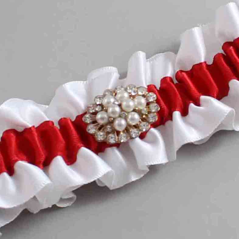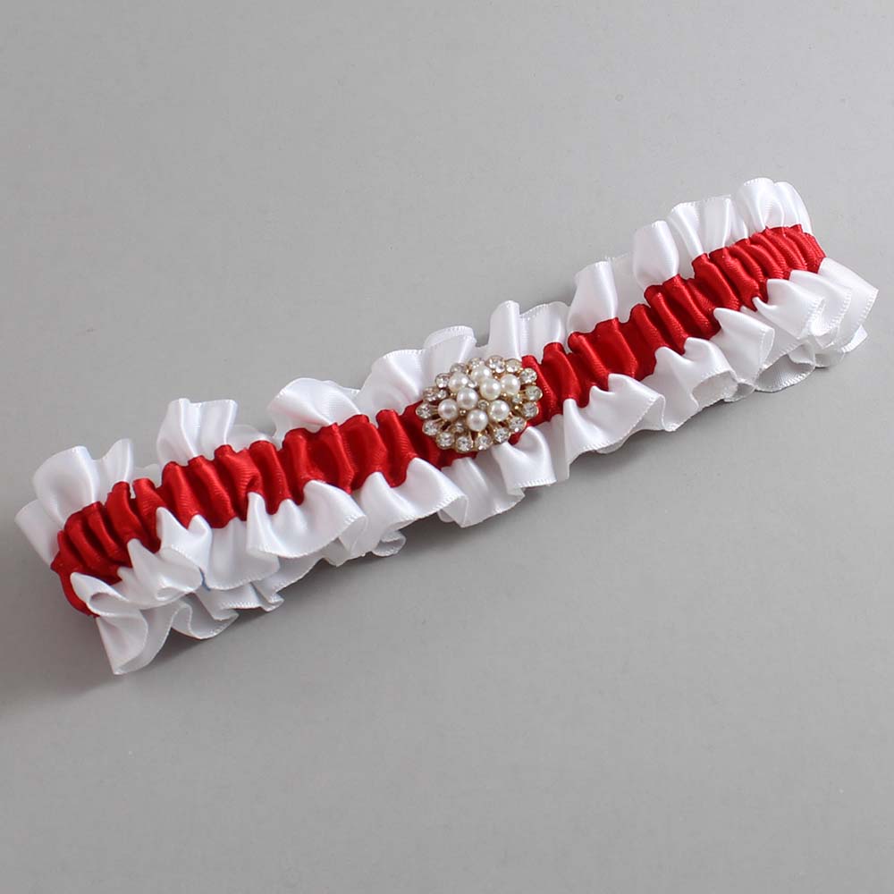 White and Red Satin Wedding Garter / White and Red Wedding Garters / Fay # (112-299)-01-M16