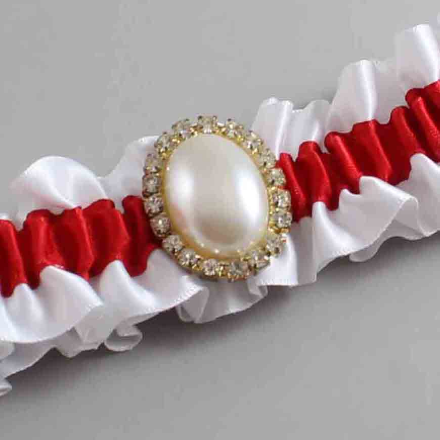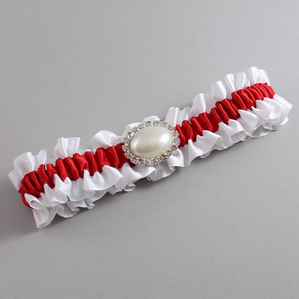 White and Red Satin Wedding Garter / White and Red Wedding Garters / Jane # (112-299)-01-M30