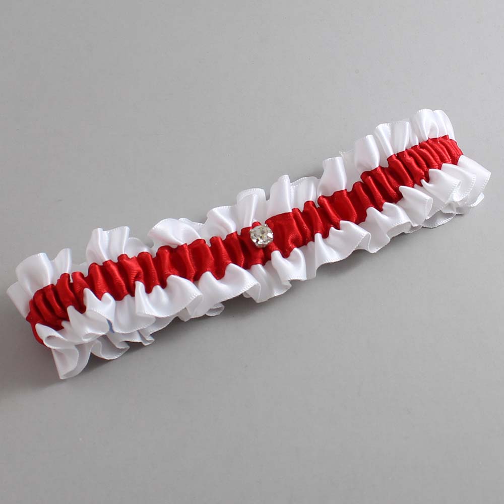 White and Red Satin Wedding Garter / White and Red Wedding Garters / Solitaire # (112-299)-01-M04