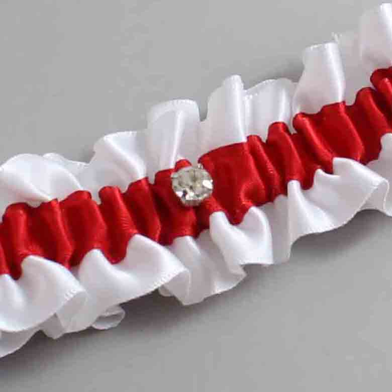 Home » Shop » Shop by Color » Shop by Satin Color » White Wedding Garters 112 » White and Red Satin Wedding Garter / White and Red Wedding Garters / Solitaire # (112-299)-01-M04