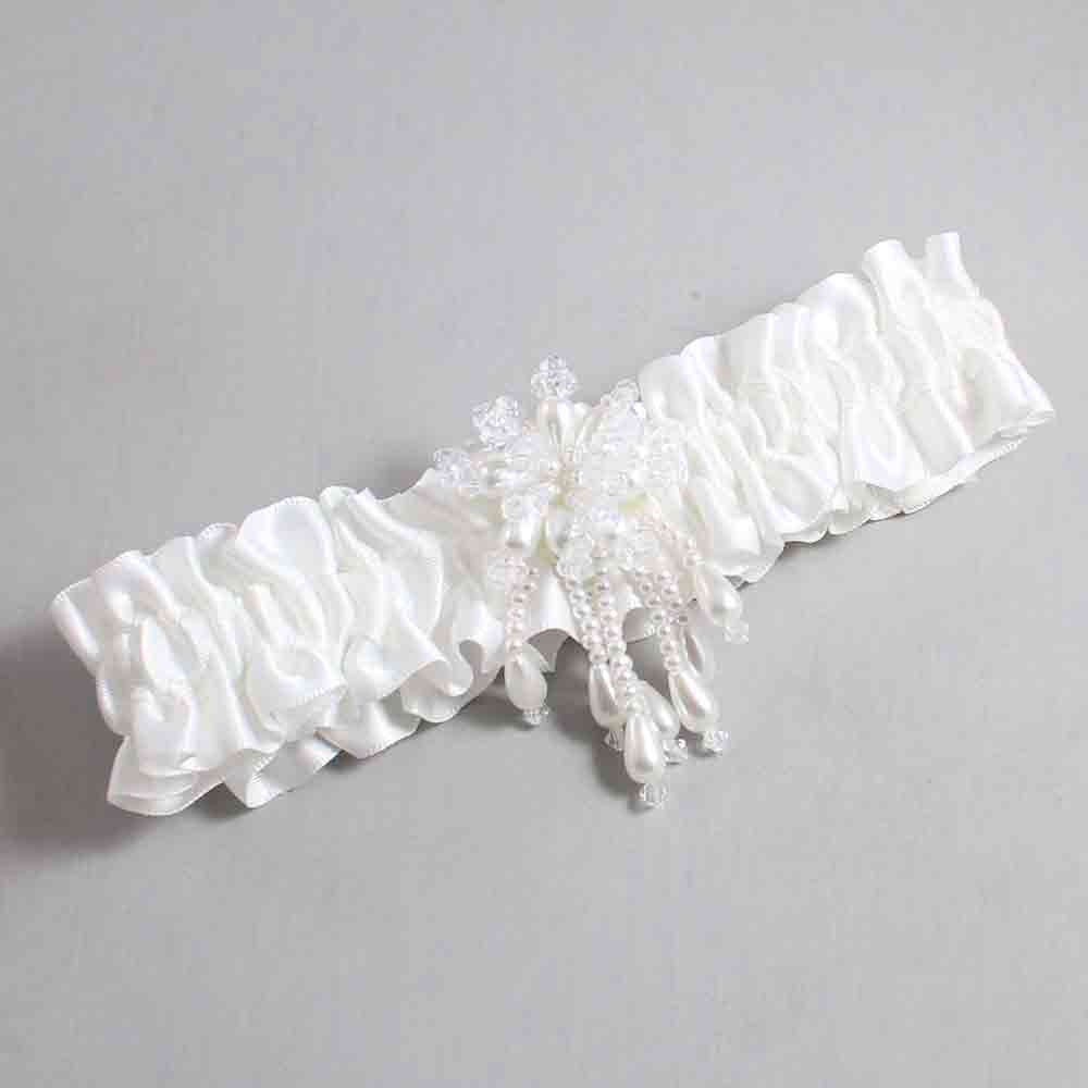 White Satin Wedding Garter / Solid White Wedding Garters / Folly # (112-112)-01-M38