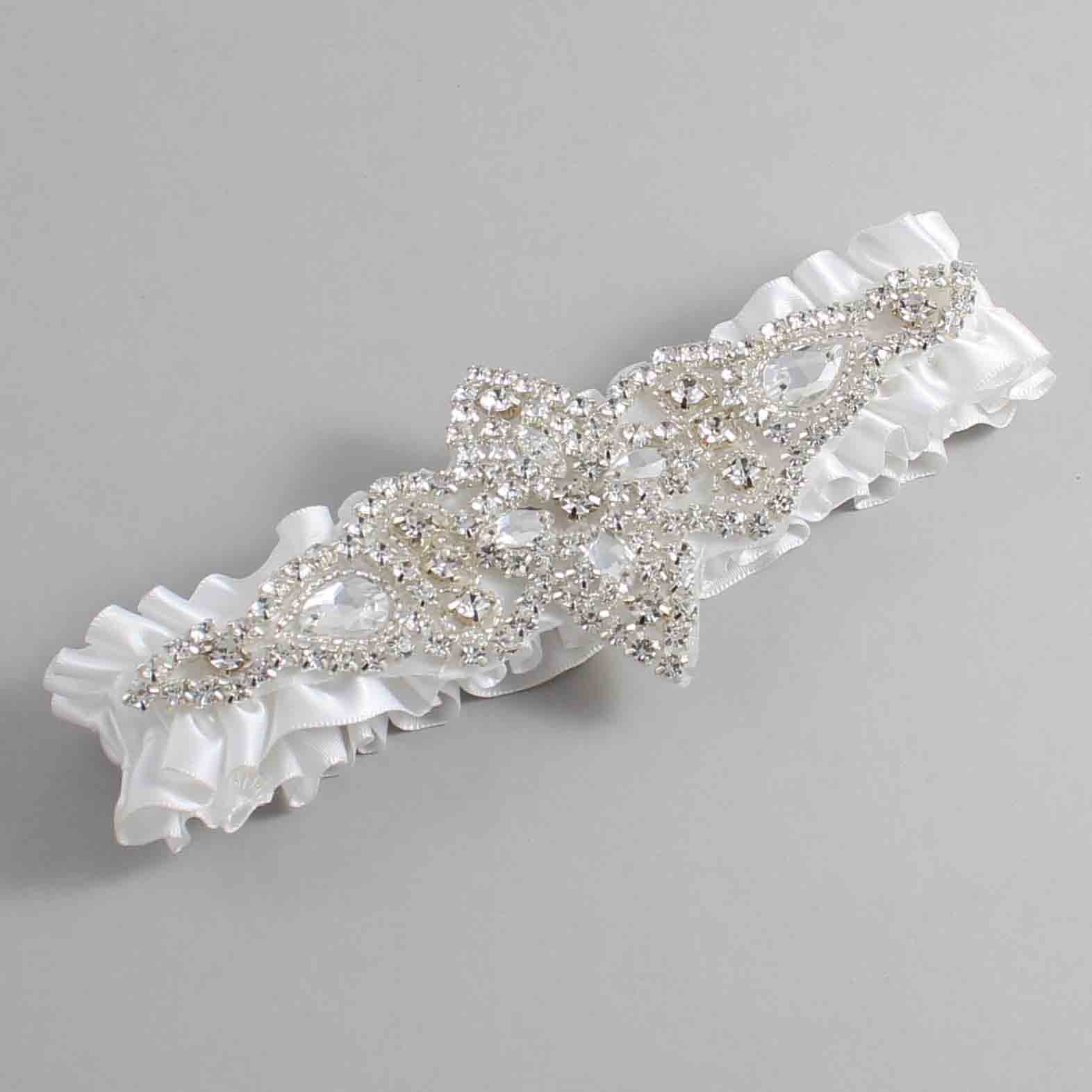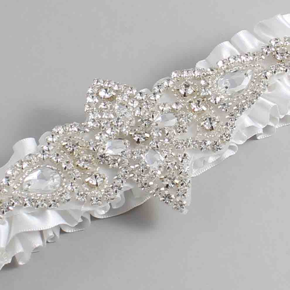 White Satin Wedding Garter / Solid White Wedding Garters / Lorine #01-A09-(112-112)-Silver
