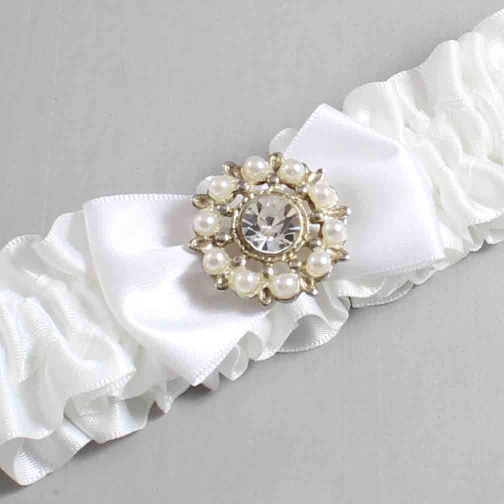 White Satin Wedding Garter / White Wedding Garters / Beth # (112-112-112)-01-B21-M14