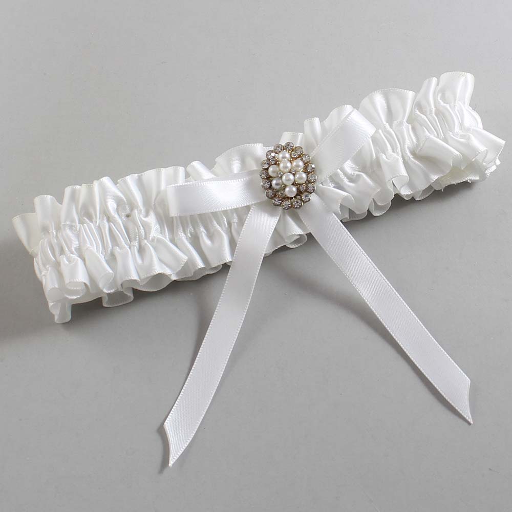 White Satin Wedding Garter / White Wedding Garters / Christy # (112-112-112)-01-B04-M17