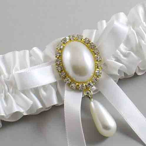 White Satin Wedding Garter / White Wedding Garters / Eunice # (112-112-112)-01-B04-M34